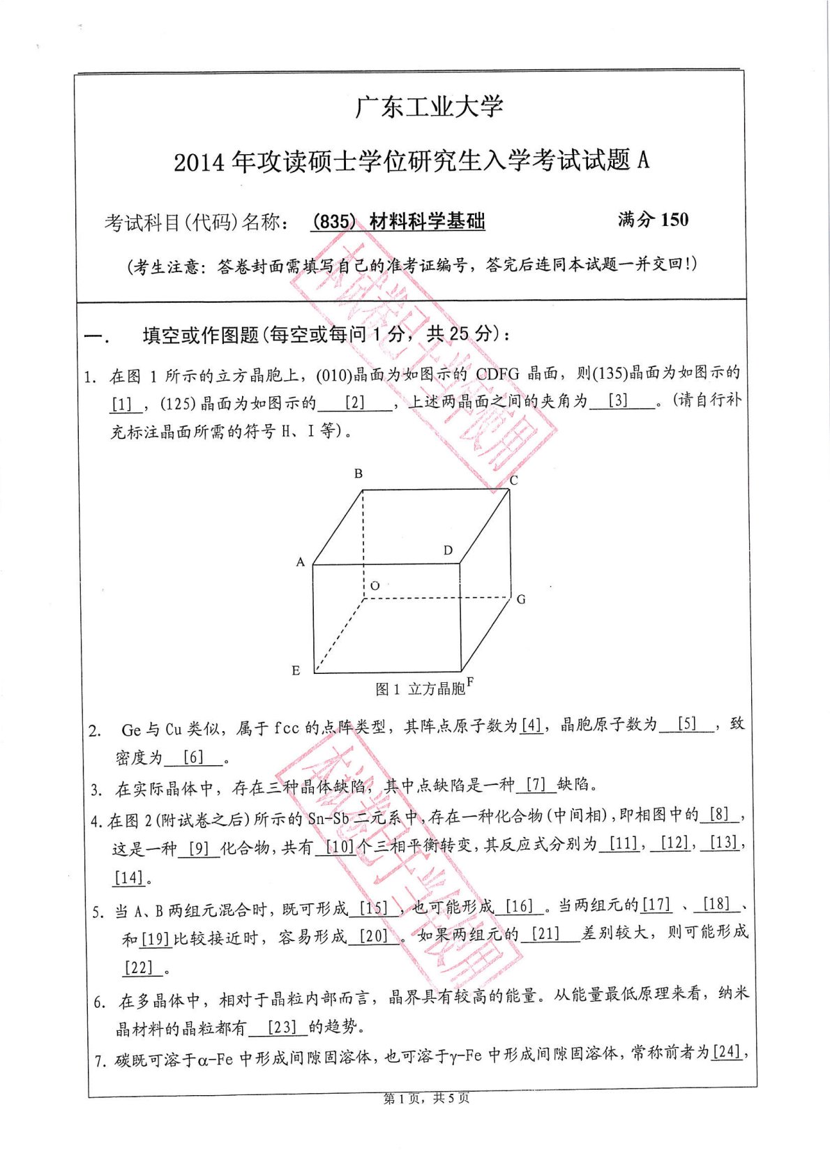 广东工业大学835材料科学基础2014真题1