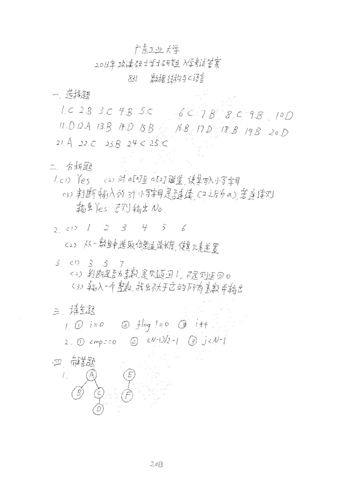 广东工业大学873C语言程序设计2013年真题答案部分