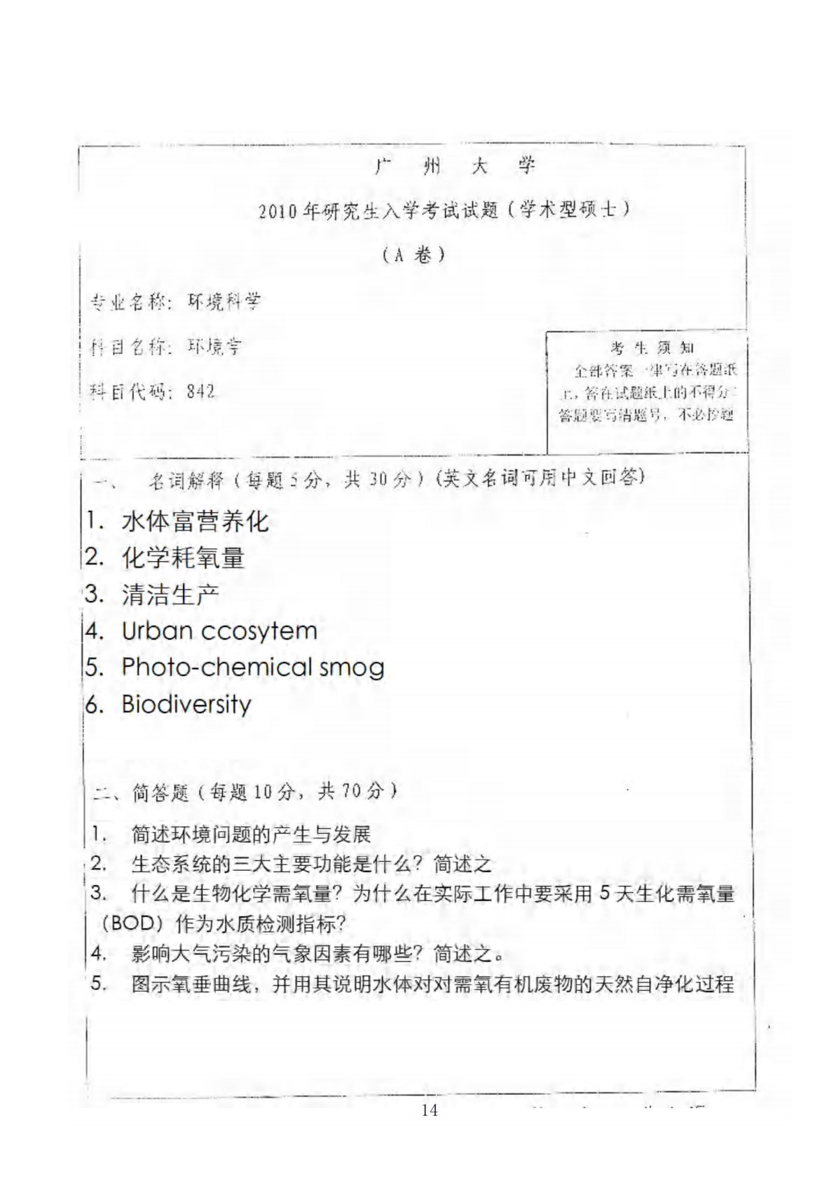 广州大学817环境学2010年真题