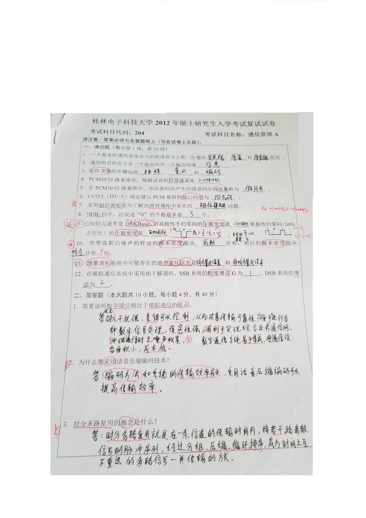 桂林电子科技大学B03通信原理2012年答案A