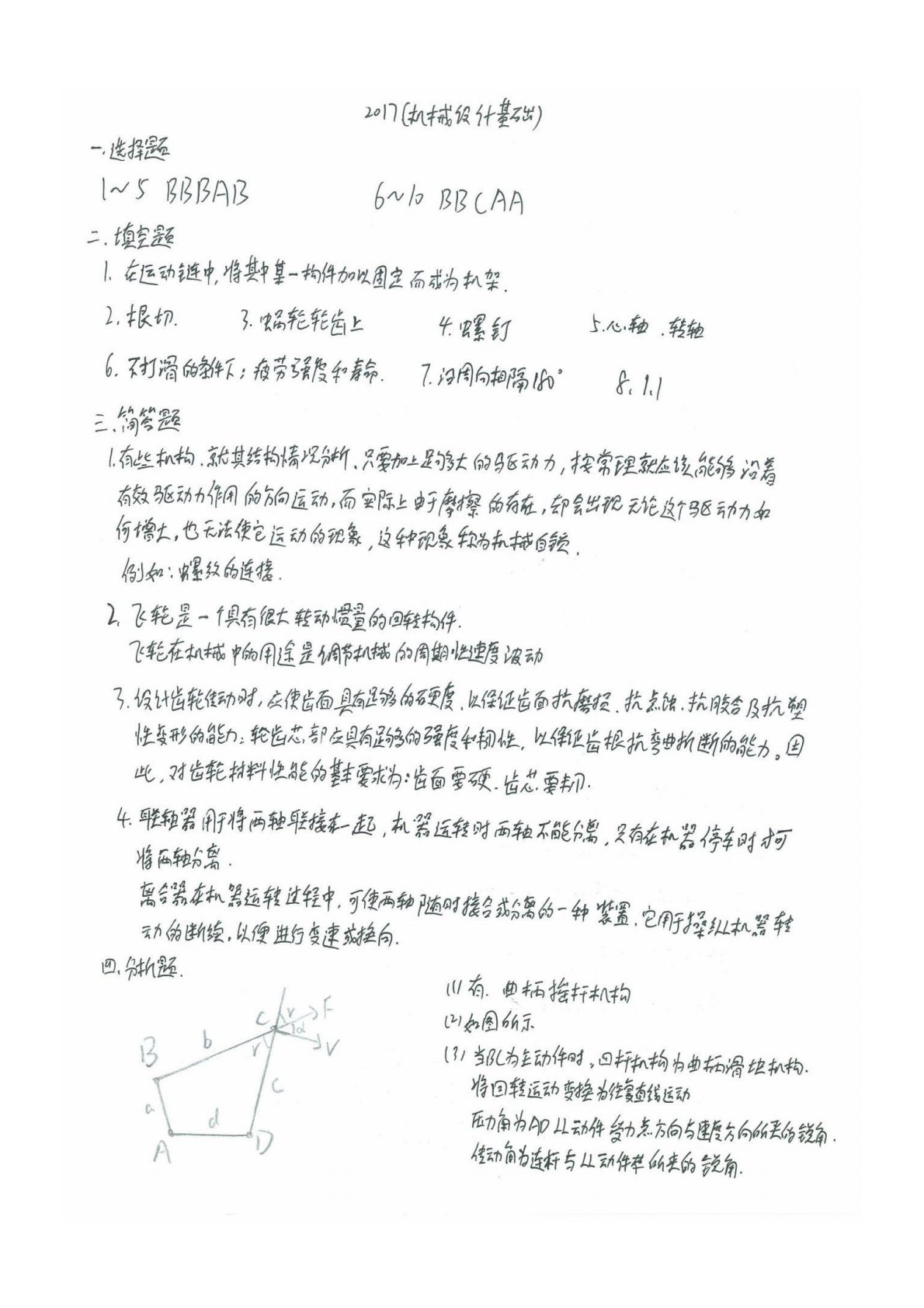 广东工业大学801机械设计基础2017年答案