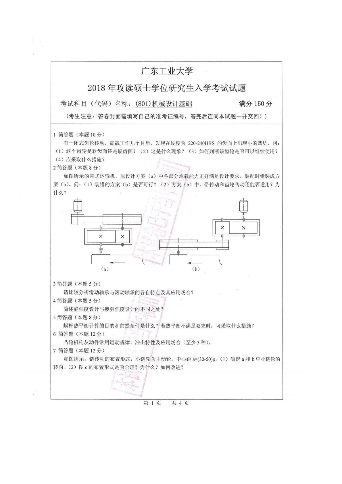 广东工业大学801机械设计基础2018年真题