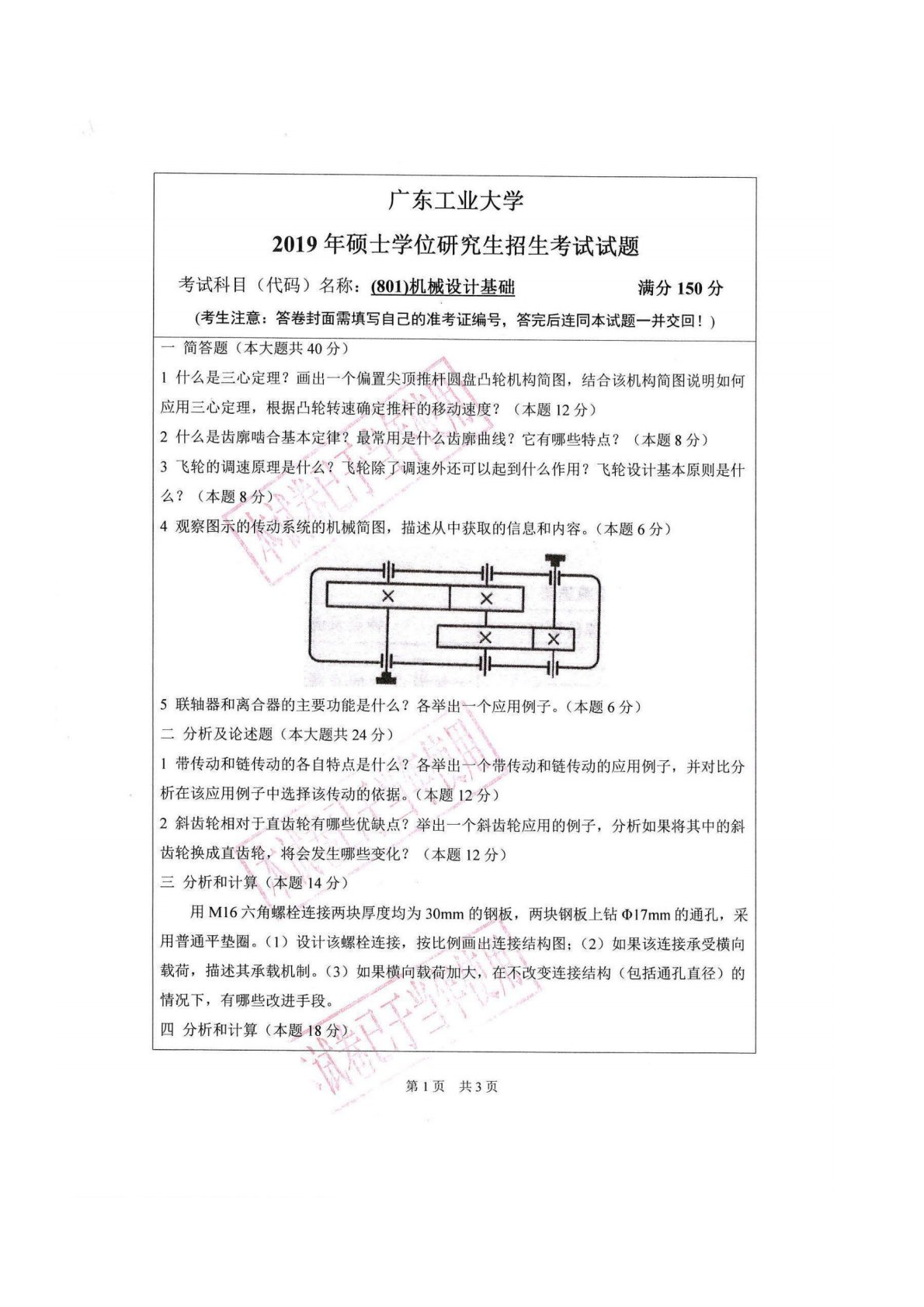 广东工业大学801机械设计基础2019年真题