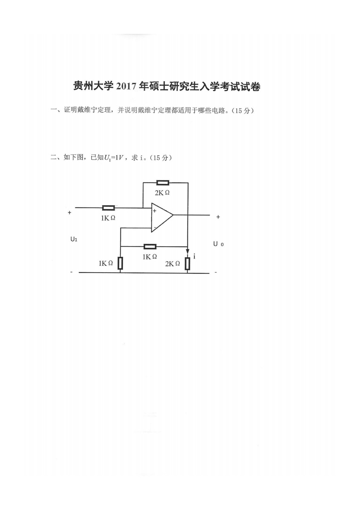 贵州大学2017年924电气考研真题