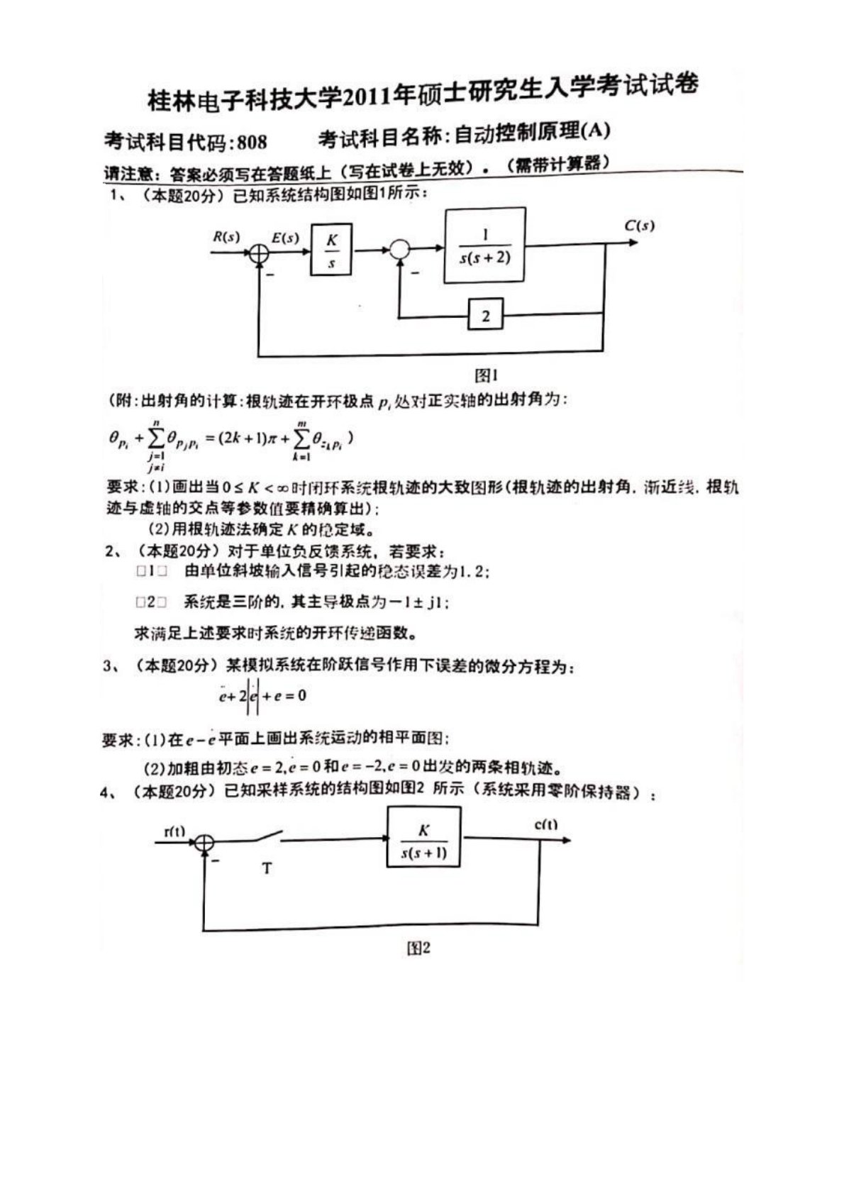 桂林电子科技大学2011年808自动控制原理考研真题