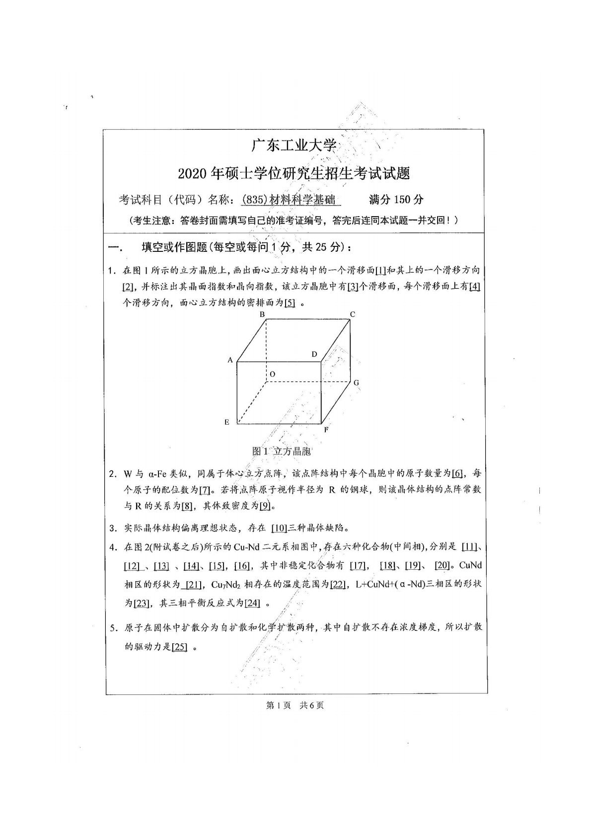 广东工业大学835材料科学基础2020真题