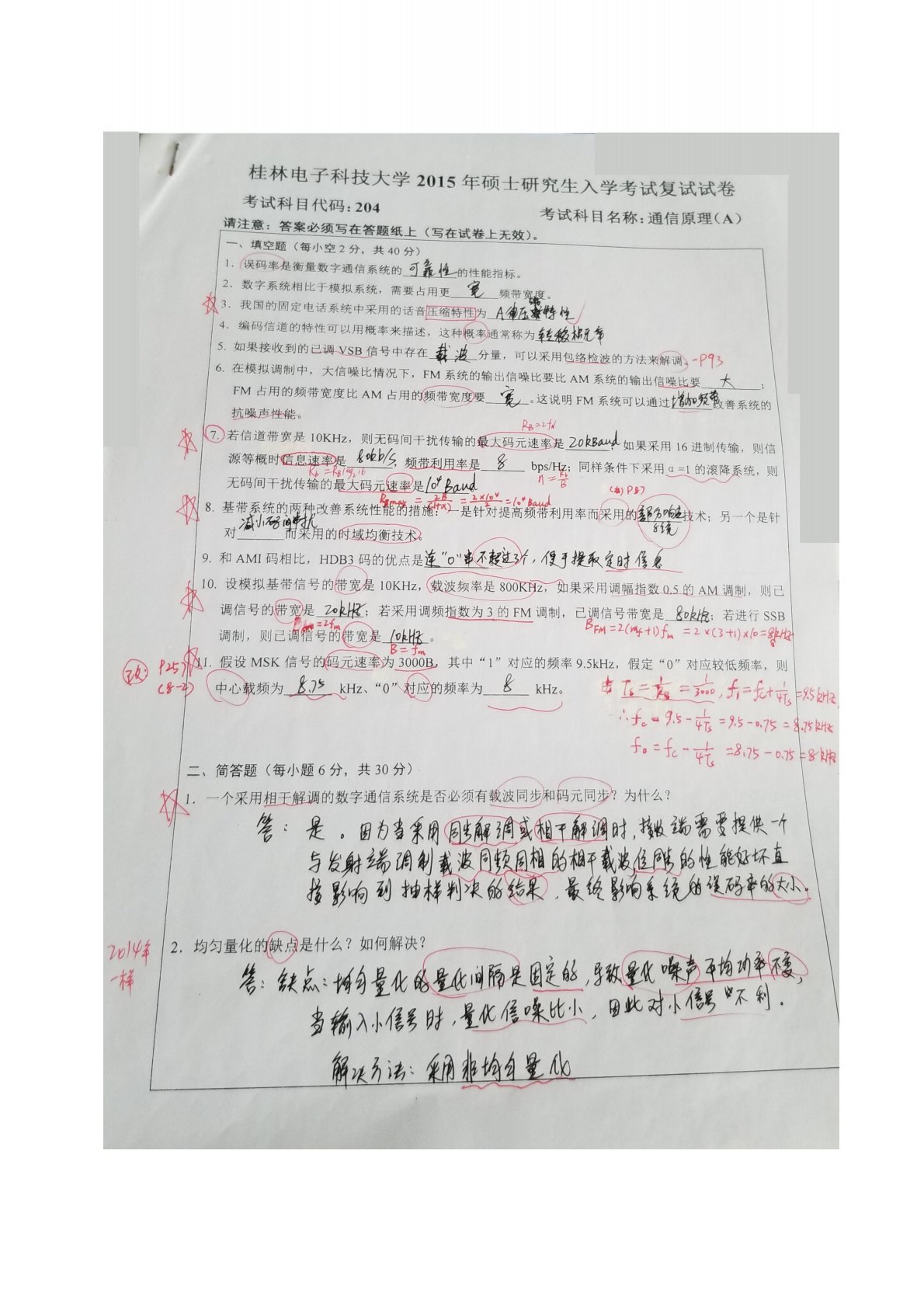 桂林电子科技大学B03通信原理2015年答案A
