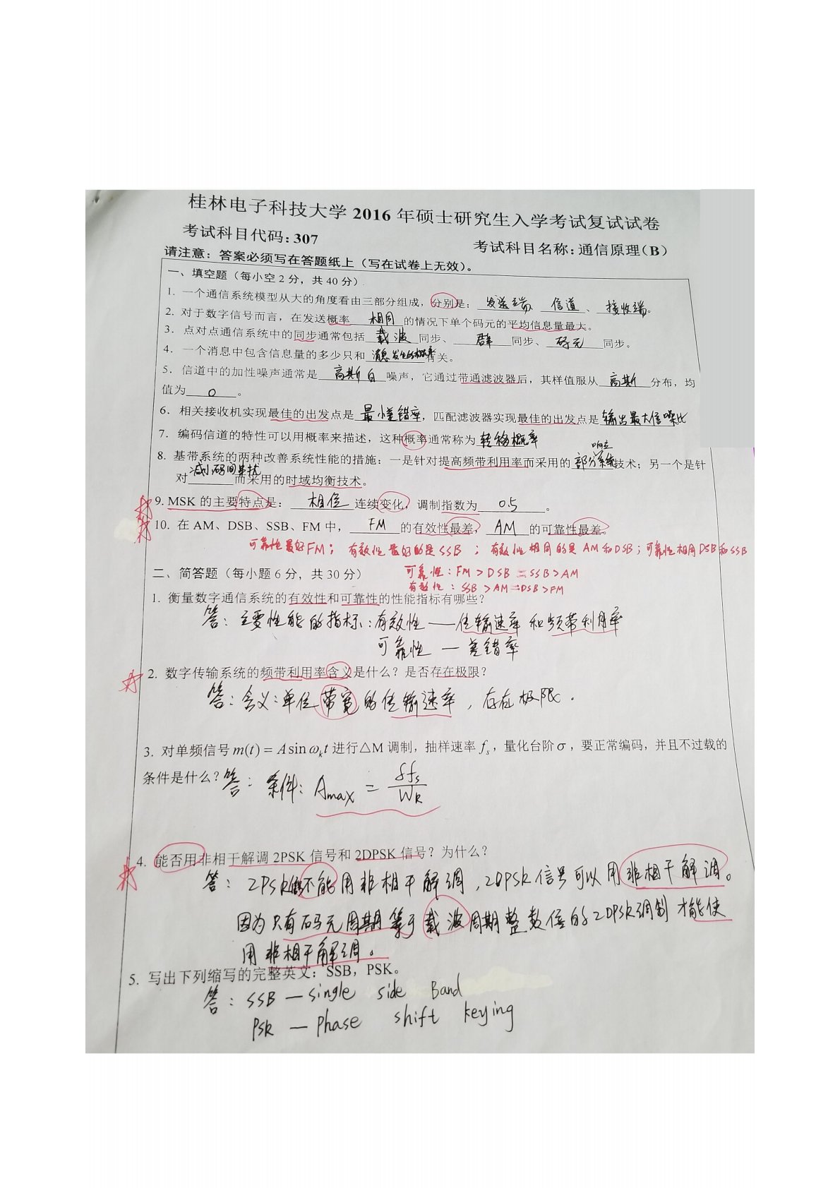 桂林电子科技大学B03通信原理2016年答案B