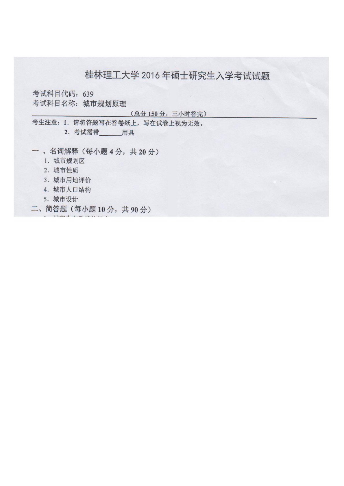 桂林理工大学639城乡规划原理2016年真题
