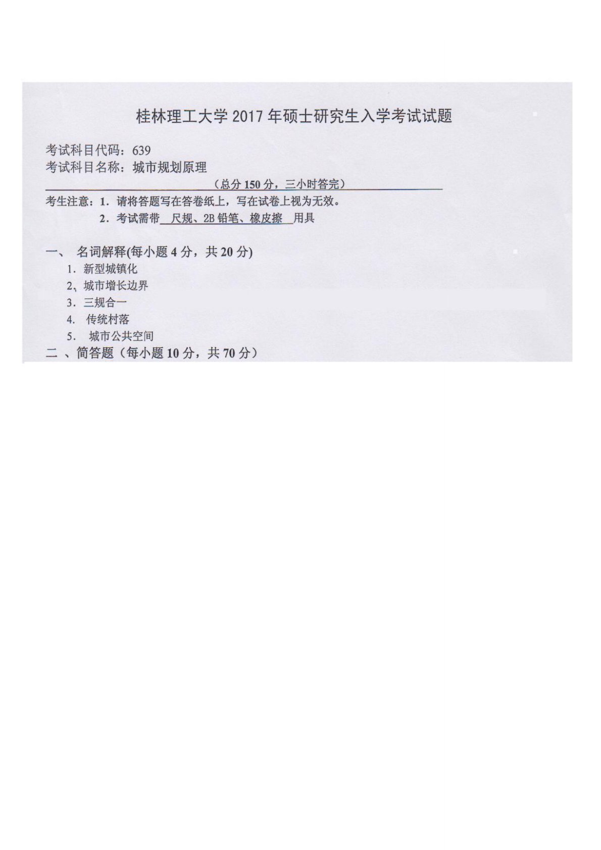 桂林理工大学639城乡规划原理2017年真题