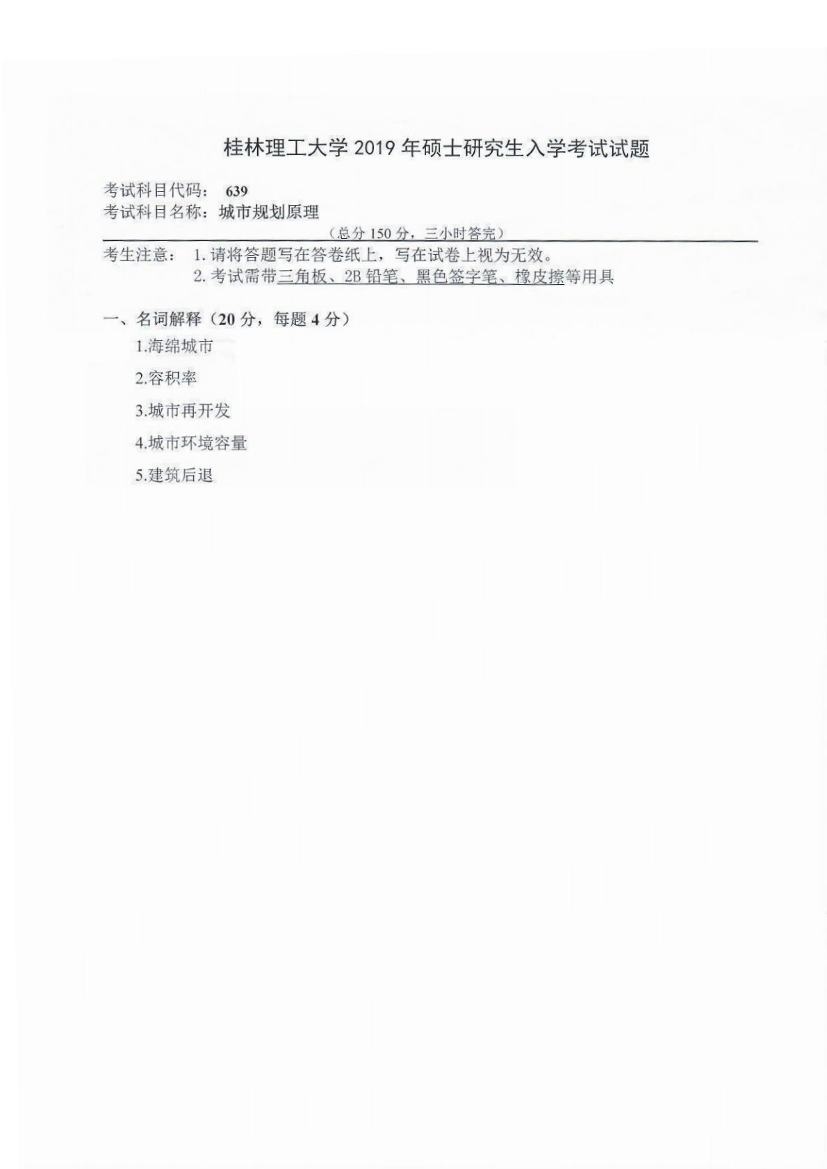 桂林理工大学639城乡规划原理2019年真题