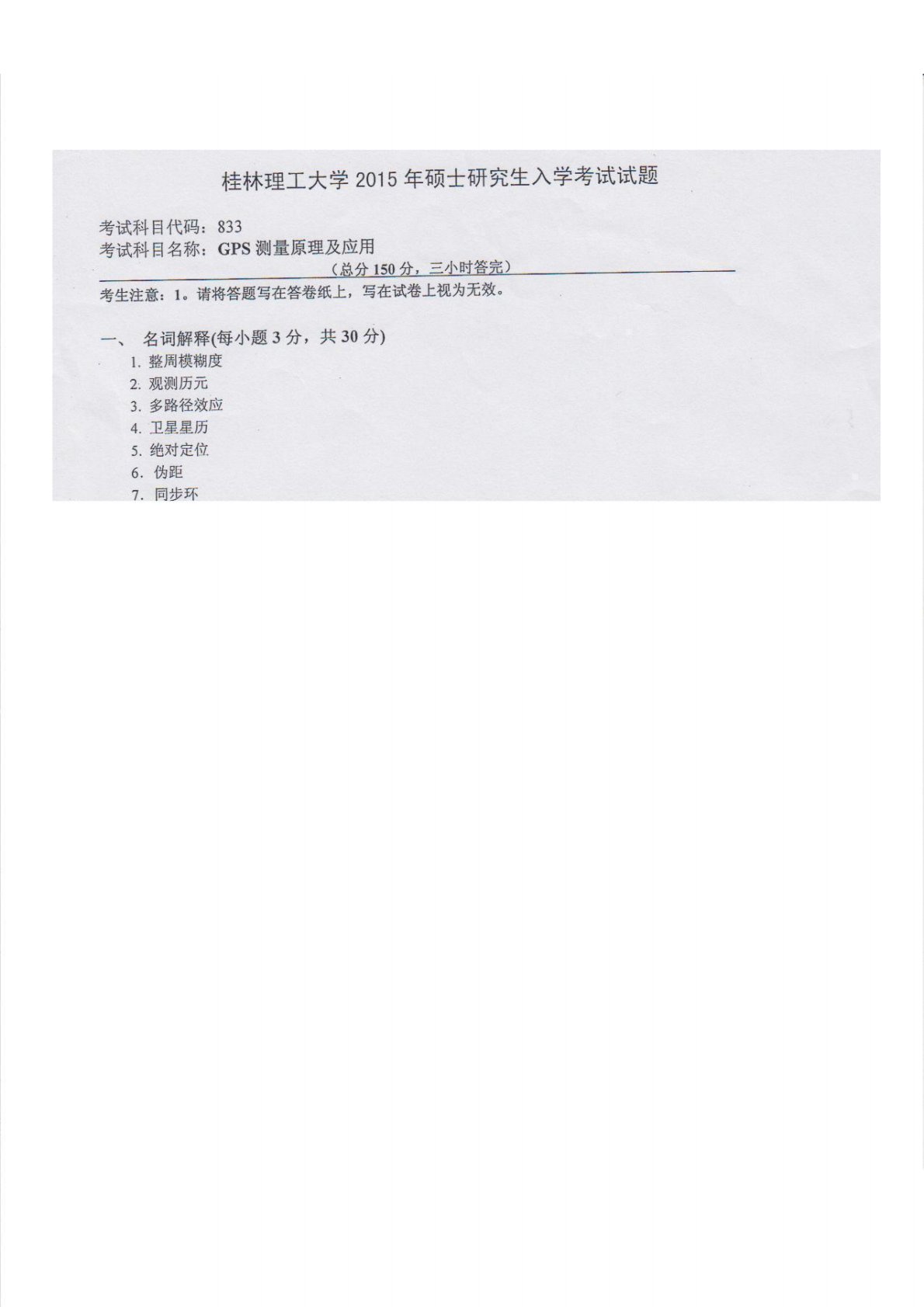 桂林理工大学833GNSS测量原理及应用2015年真题