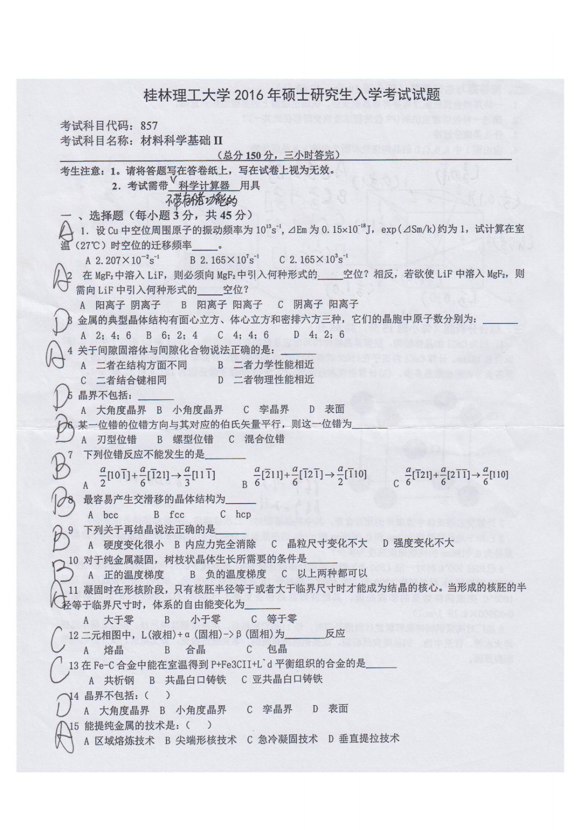 桂林理工大学856材料科学基础2016年真题