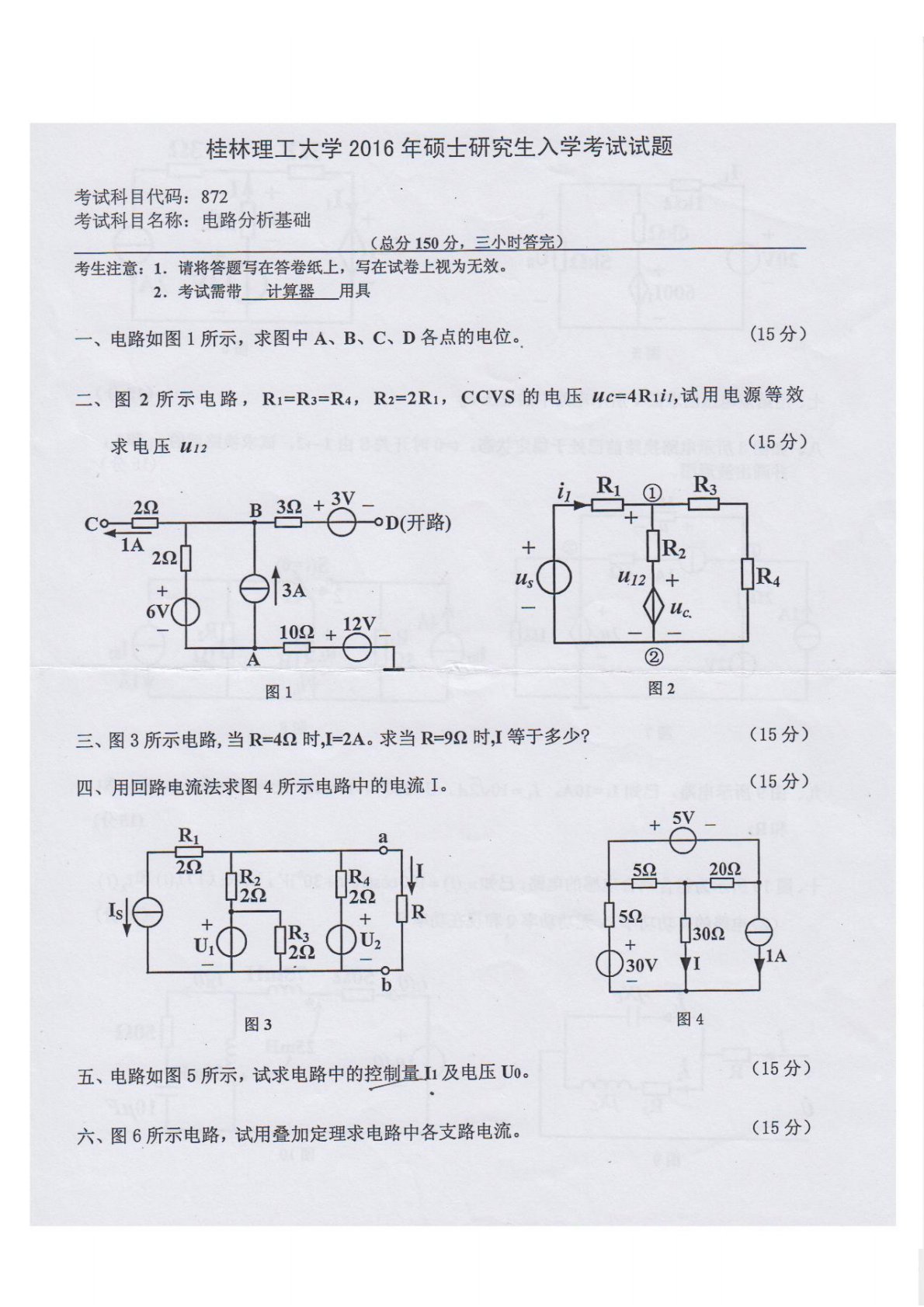 清华大学827电路原理2009年真题