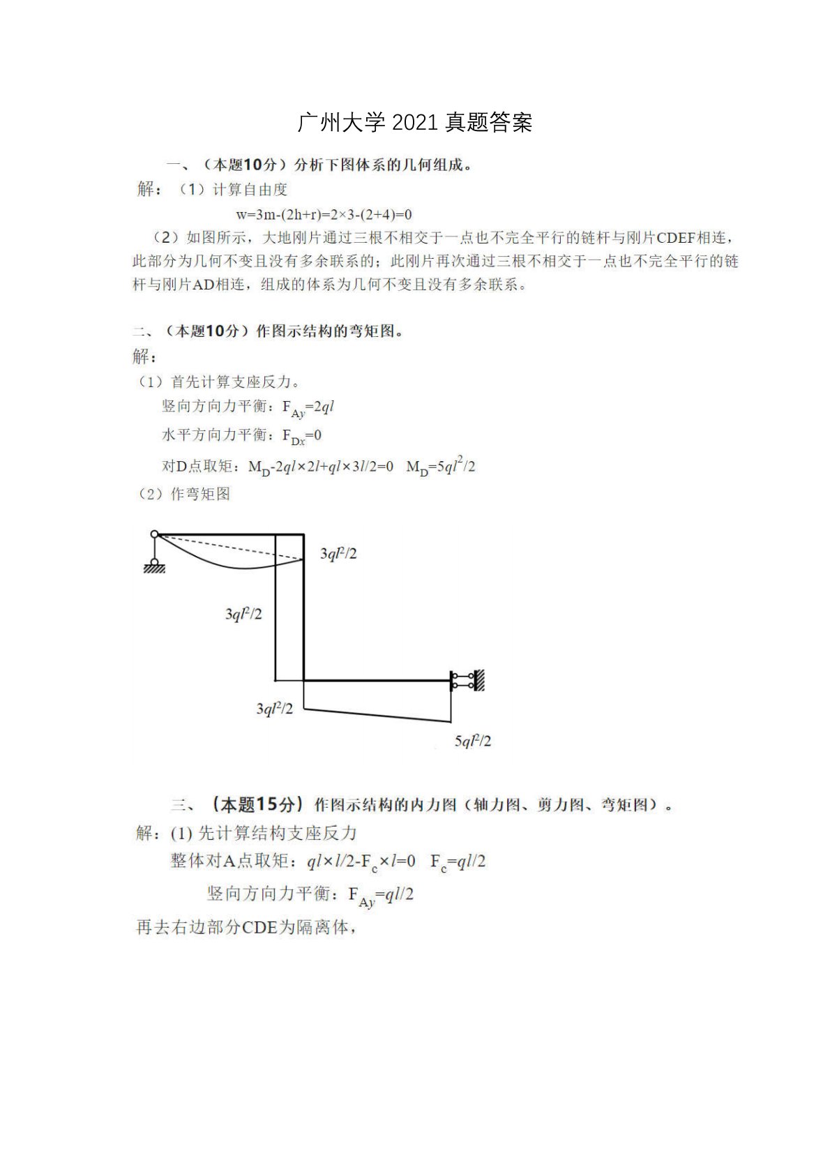 广州大学839结构力学2021年真题答案