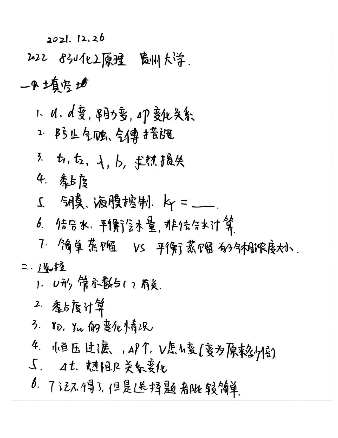 贵州大学830化工原理2022年真题