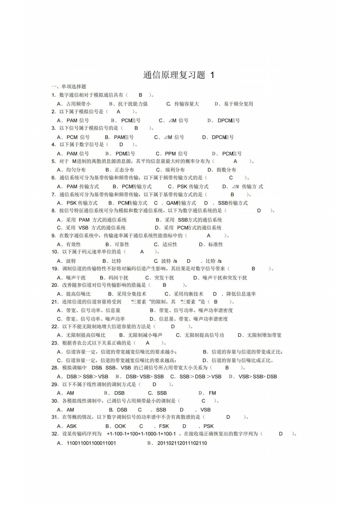 桂林电子科技大学B03通信原理复习题库