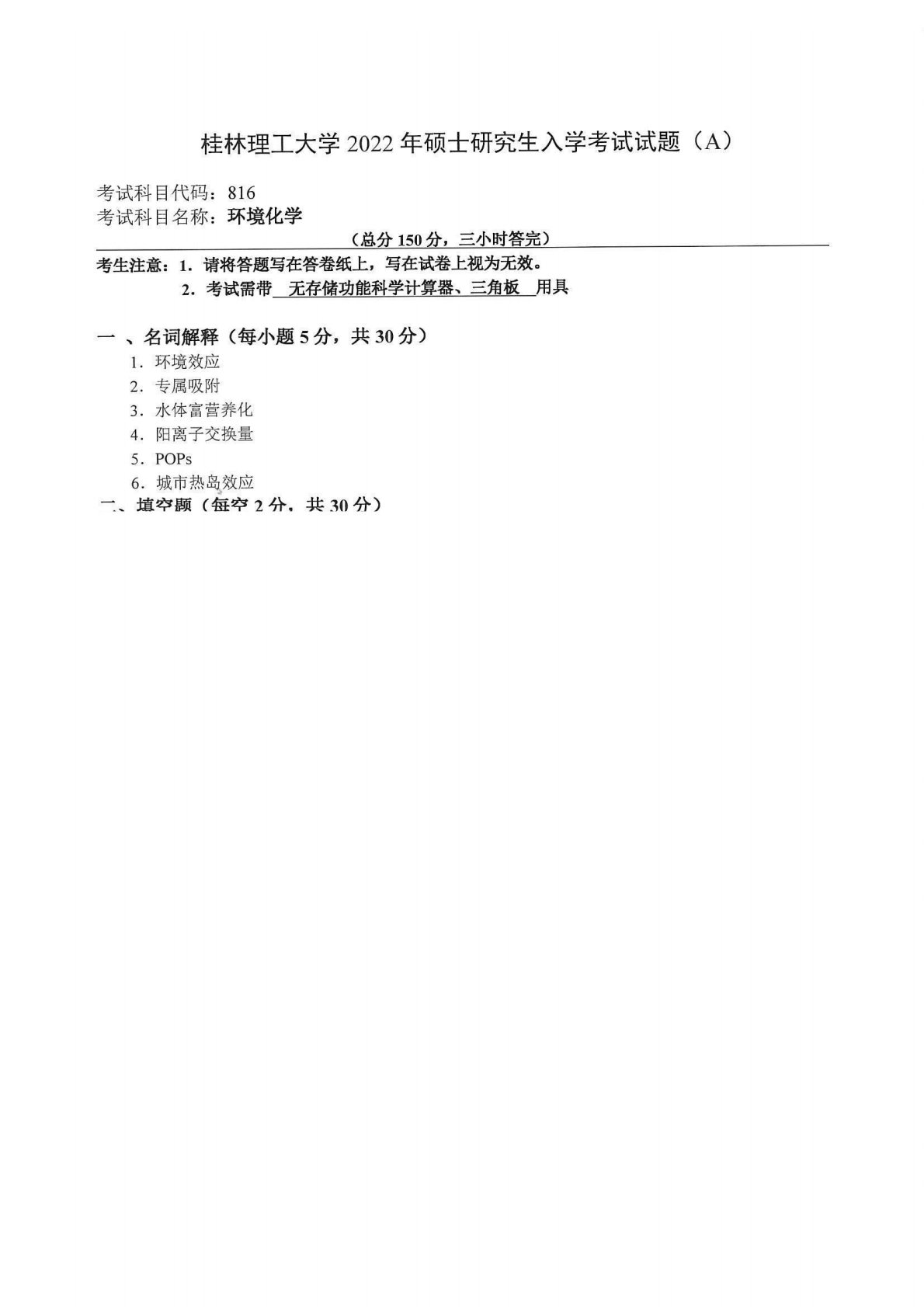 桂林理工大学816环境化学2022年真题