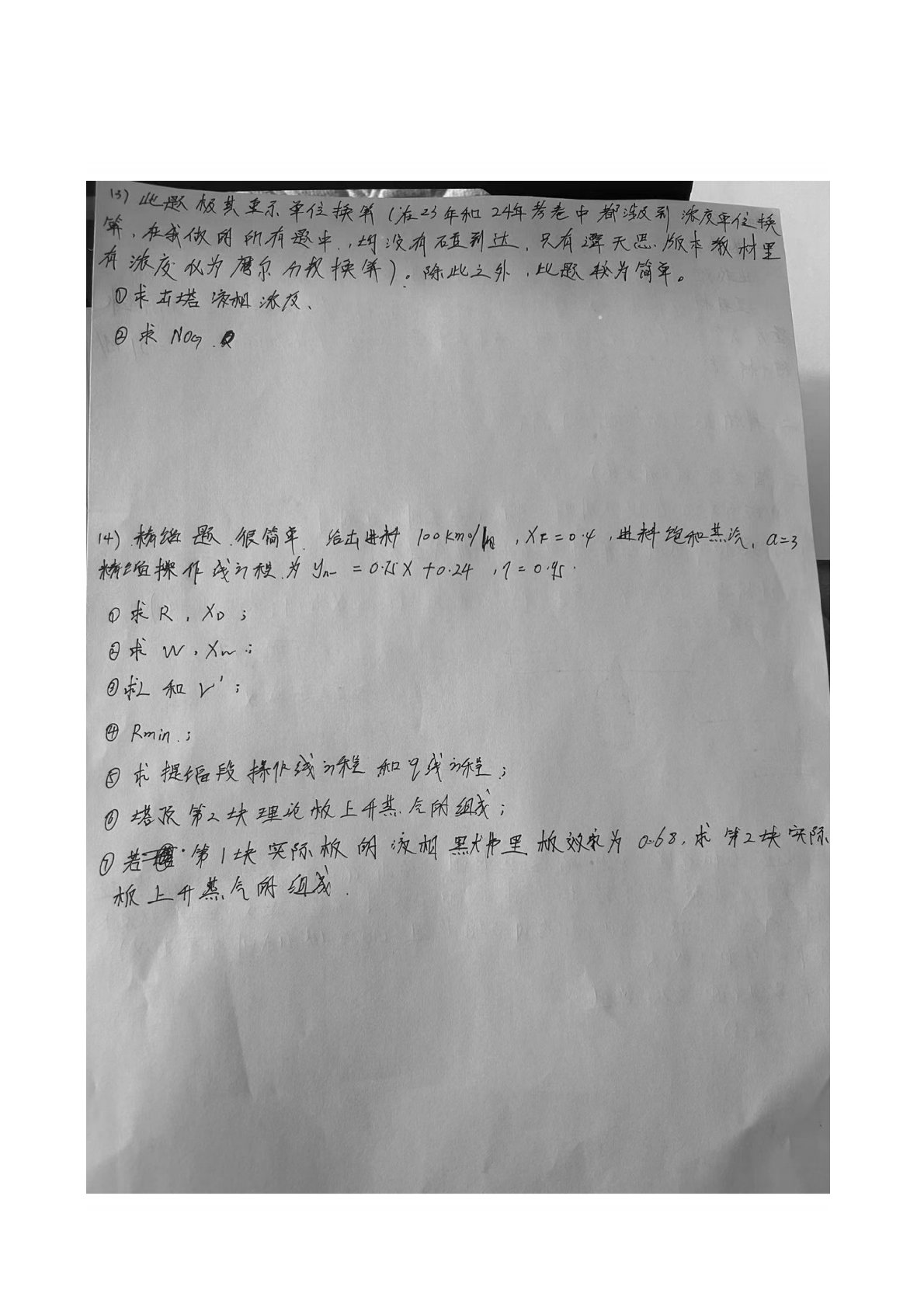 贵州大学830化工原理2024年真题回忆版