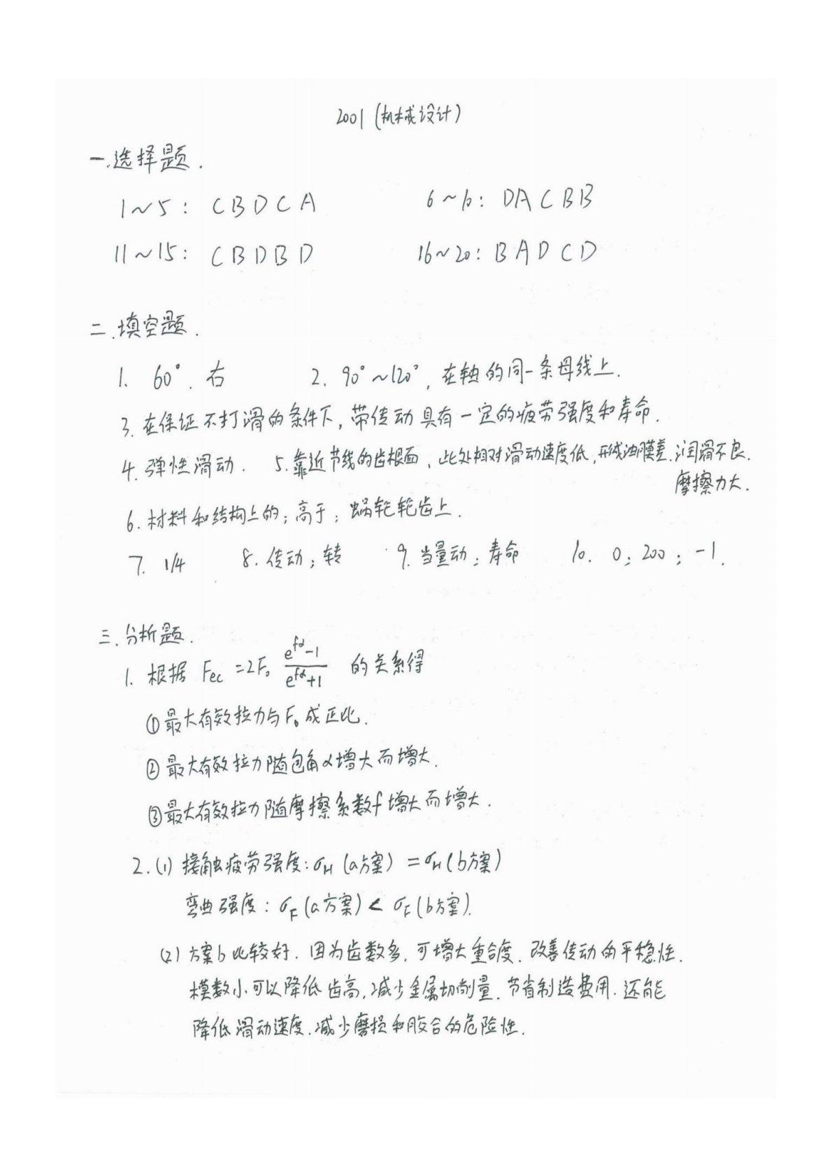 广东工业大学801机械设计基础2001年答案