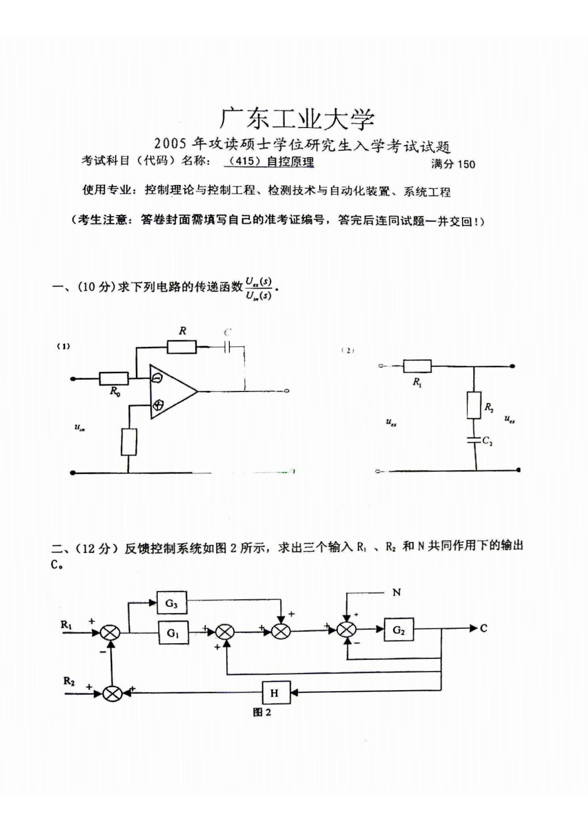 广东工业大学810自控原理2005年考研真题