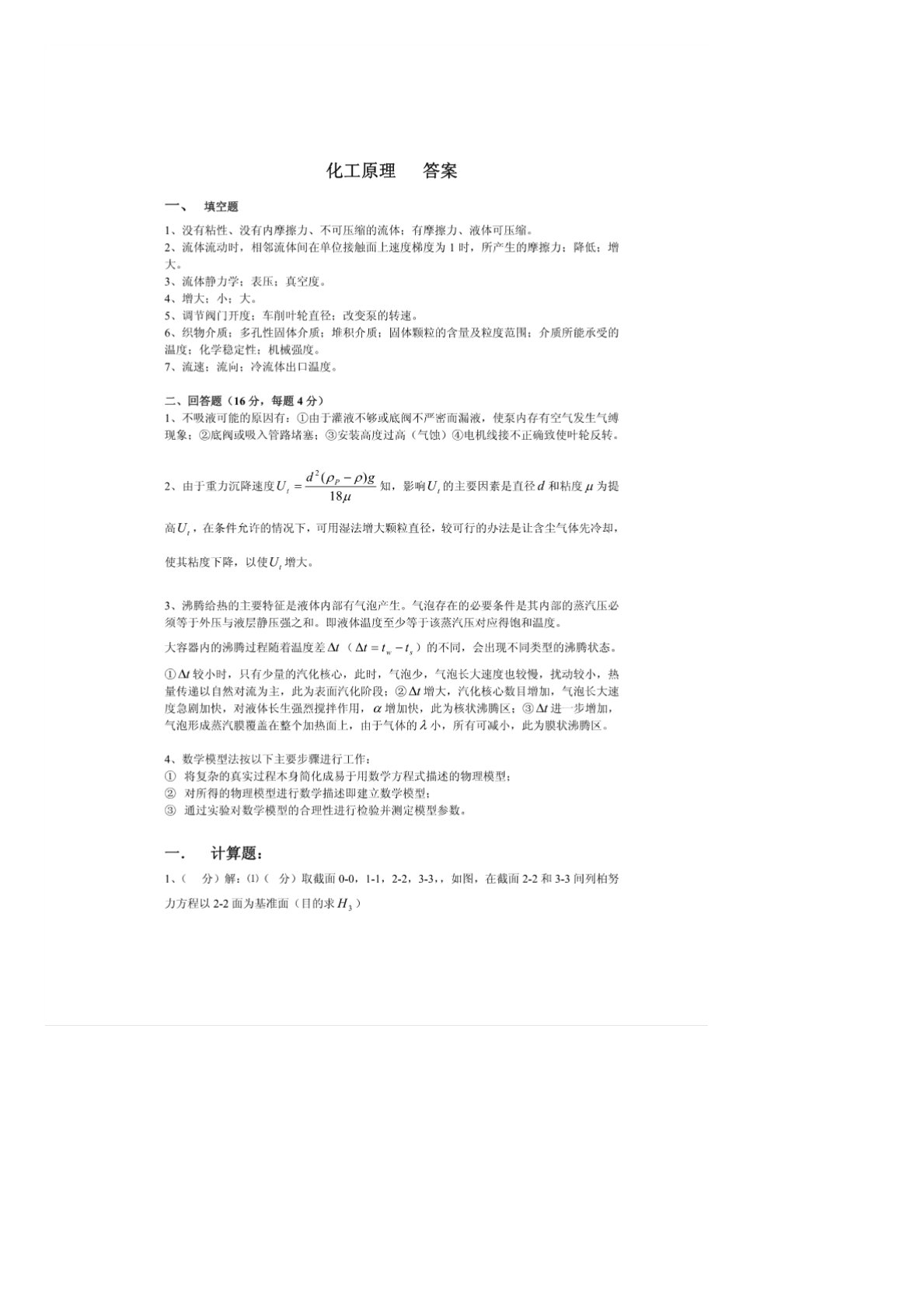 贵州大学830化工原理2004年真题答案