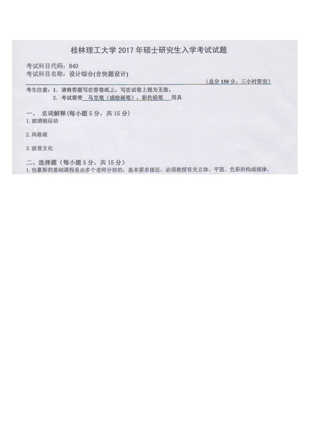 桂林理工大学840艺术专业综合2017年真题
