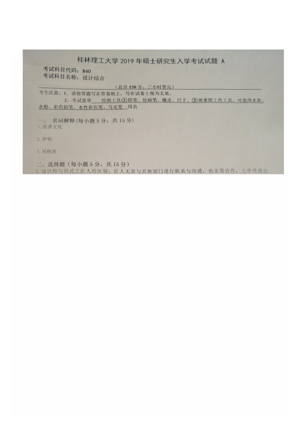 桂林理工大学840艺术专业综合2019年真题
