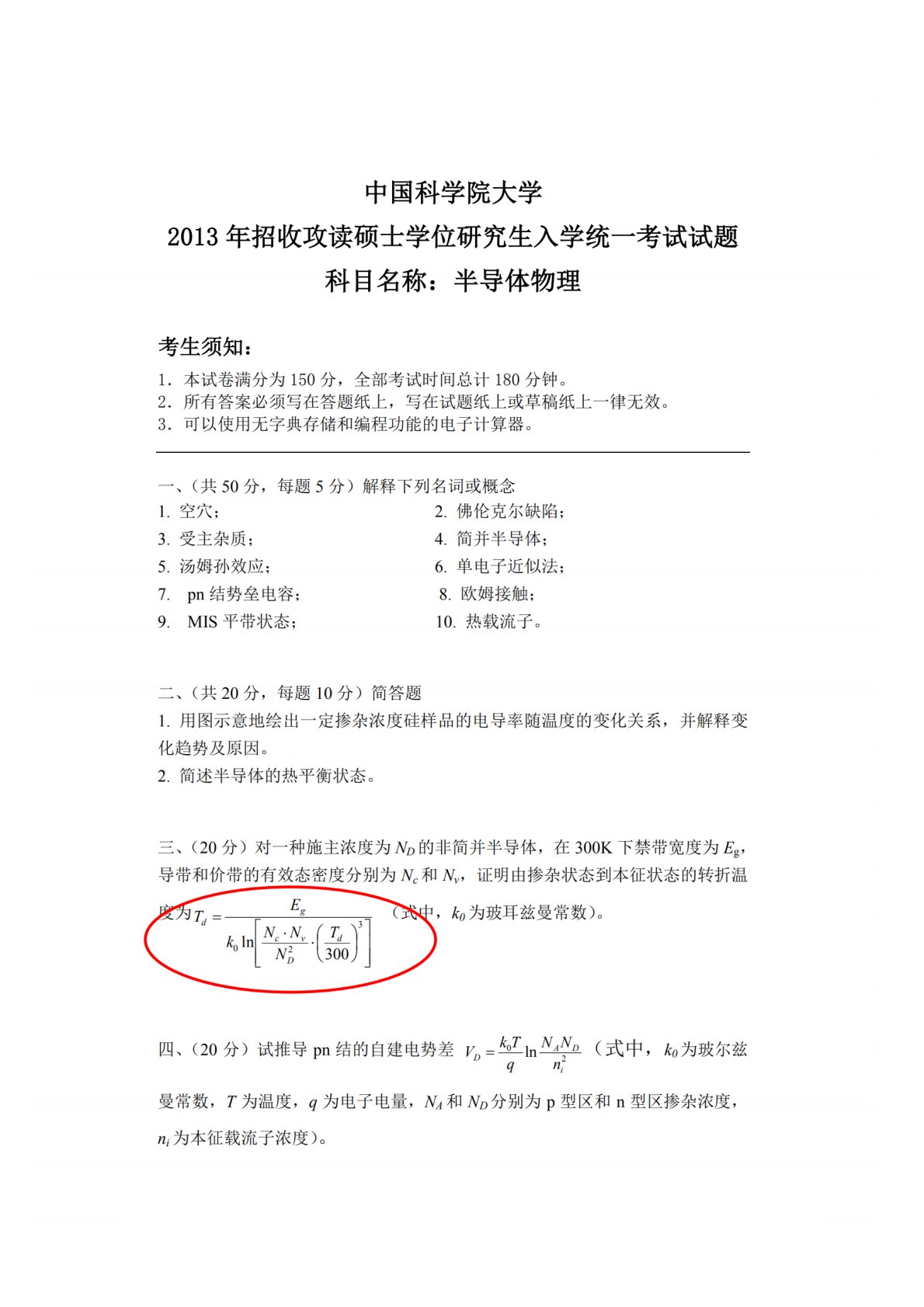 中国科学院大学804半导体物理考研2013年真题