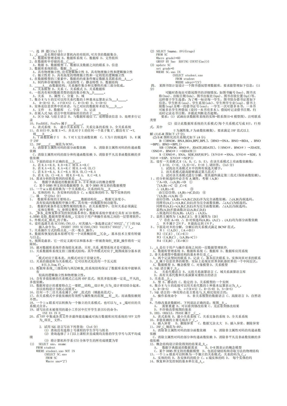 中南财经政法大学1099数据库原理试卷及答案