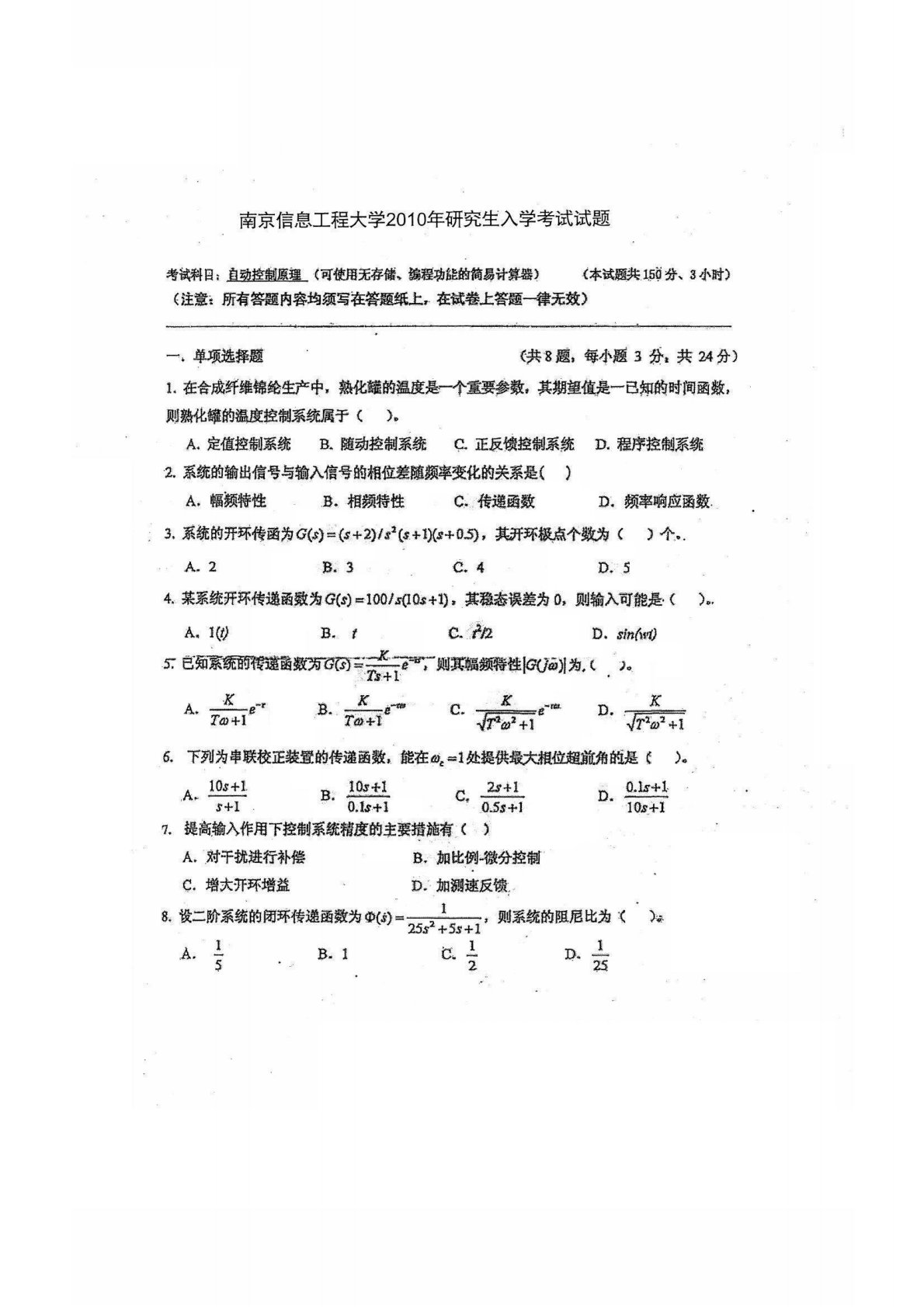 南京信息工程大学817自动控制原理2010年真题