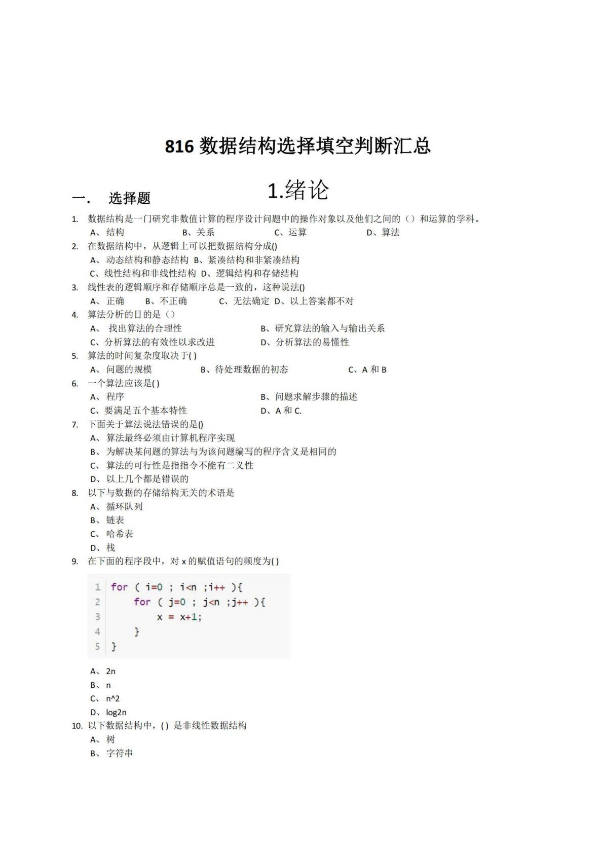 南京信息工程大学816数据结构选择填空判断汇总