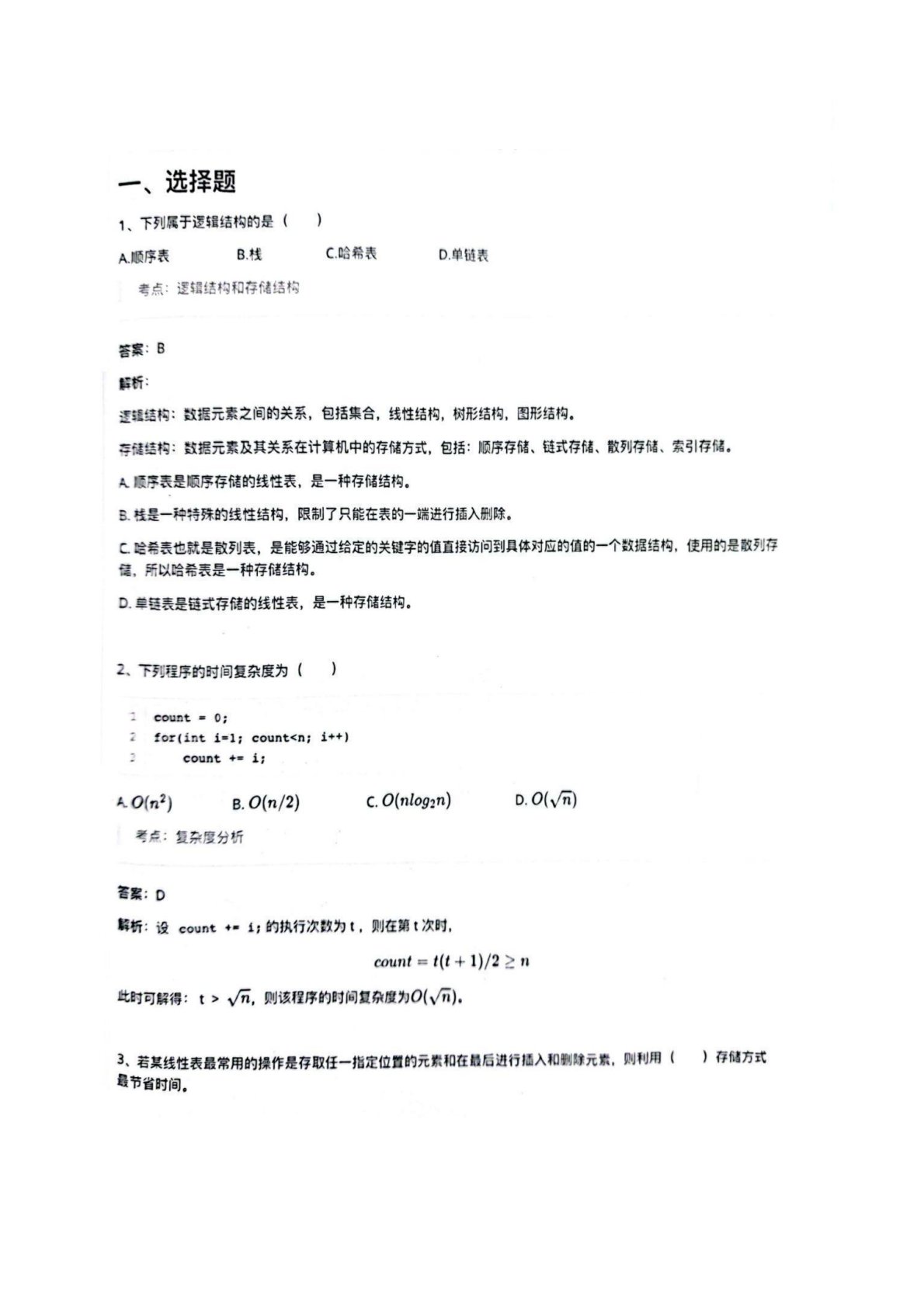 南京信息工程大学816数据结构套卷解析三