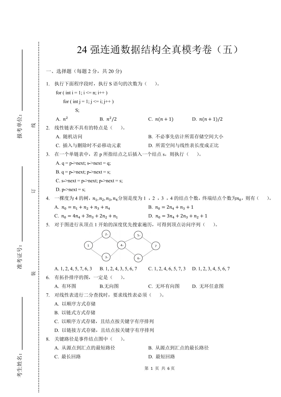 南京信息工程大学816数据结构全真模考卷(五)