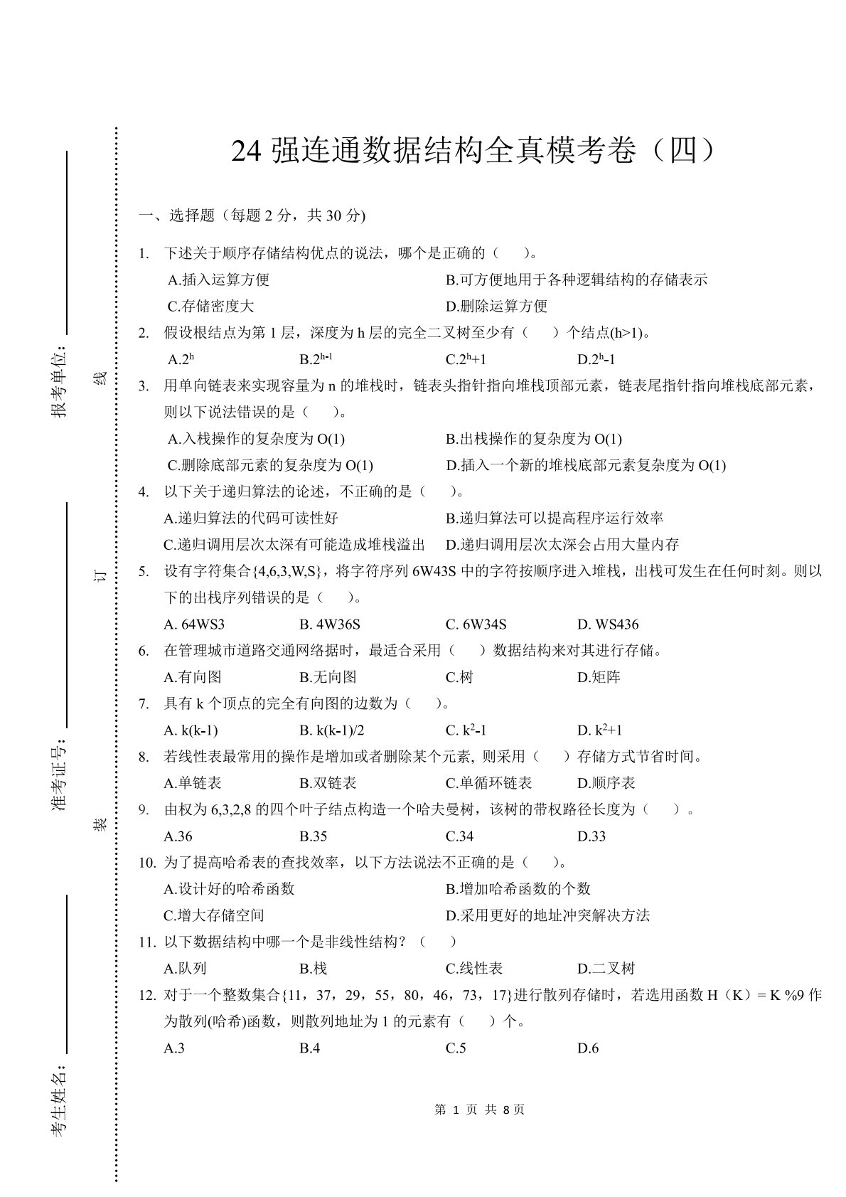 南京信息工程大学816数据结构全真模考卷(四)