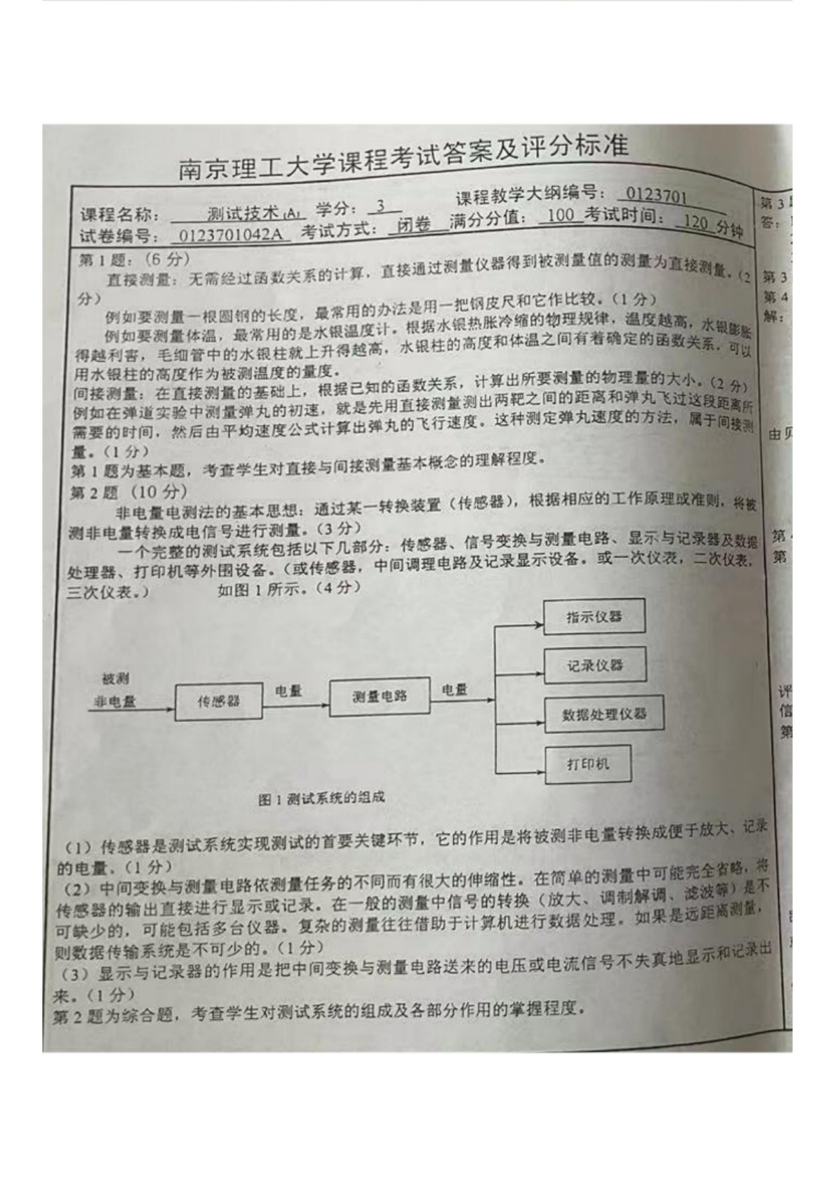 南京理工大学880信号与测控系统测试技术试卷3答案