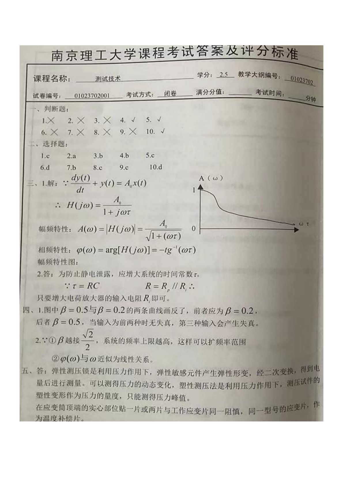 南京理工大学880信号与测控系统测试技术试卷2答案