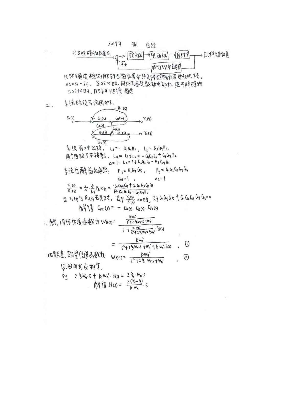 南京大学961自动控制原理(经典60%、现代40%)2014年真题答案手写版