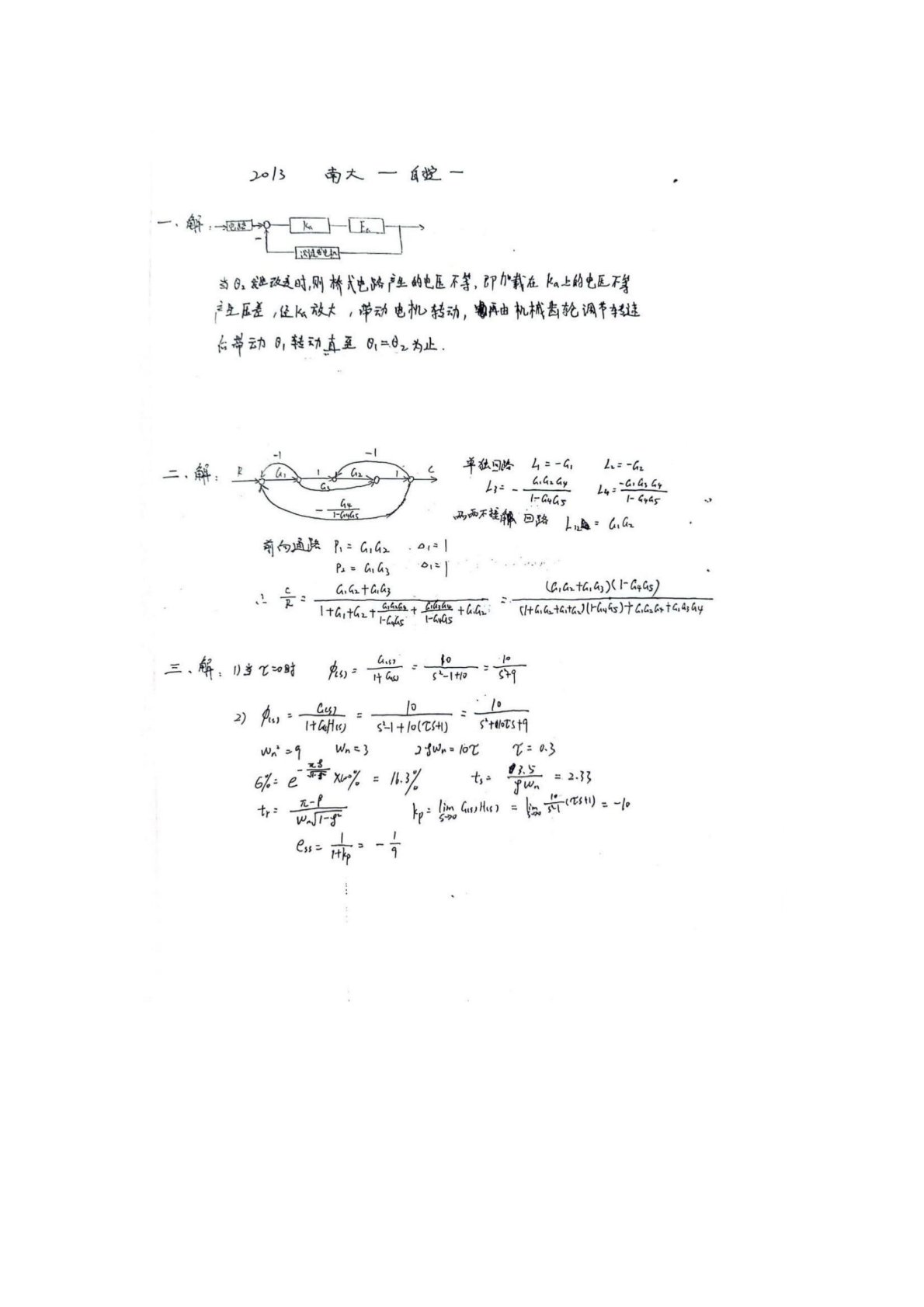 南京大学961自动控制原理(经典60%、现代40%)2013年真题答案手写版