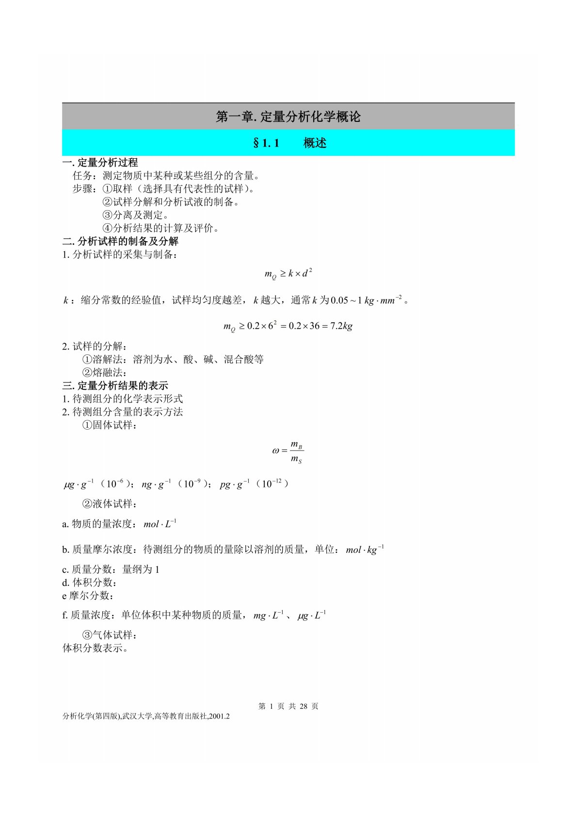 内蒙古大学671化学专业综合一分析化学笔记