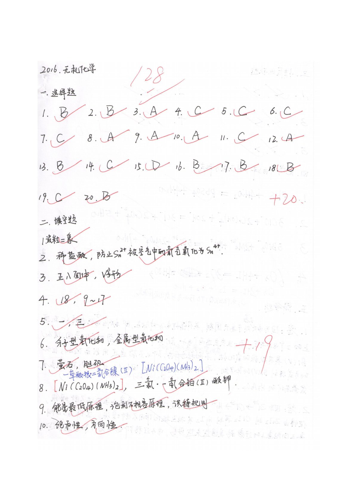 内蒙古大学671化学专业综合一无机化学2016年真题答案手写版