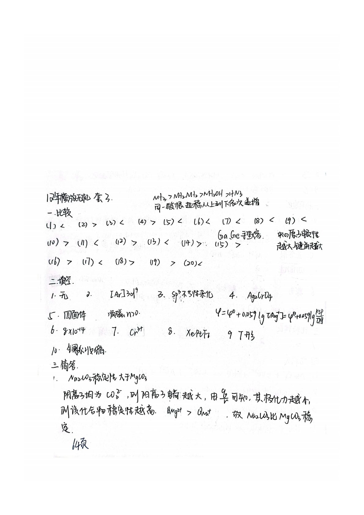 内蒙古大学671化学专业综合一无机化学模版2012年真题答案手写版