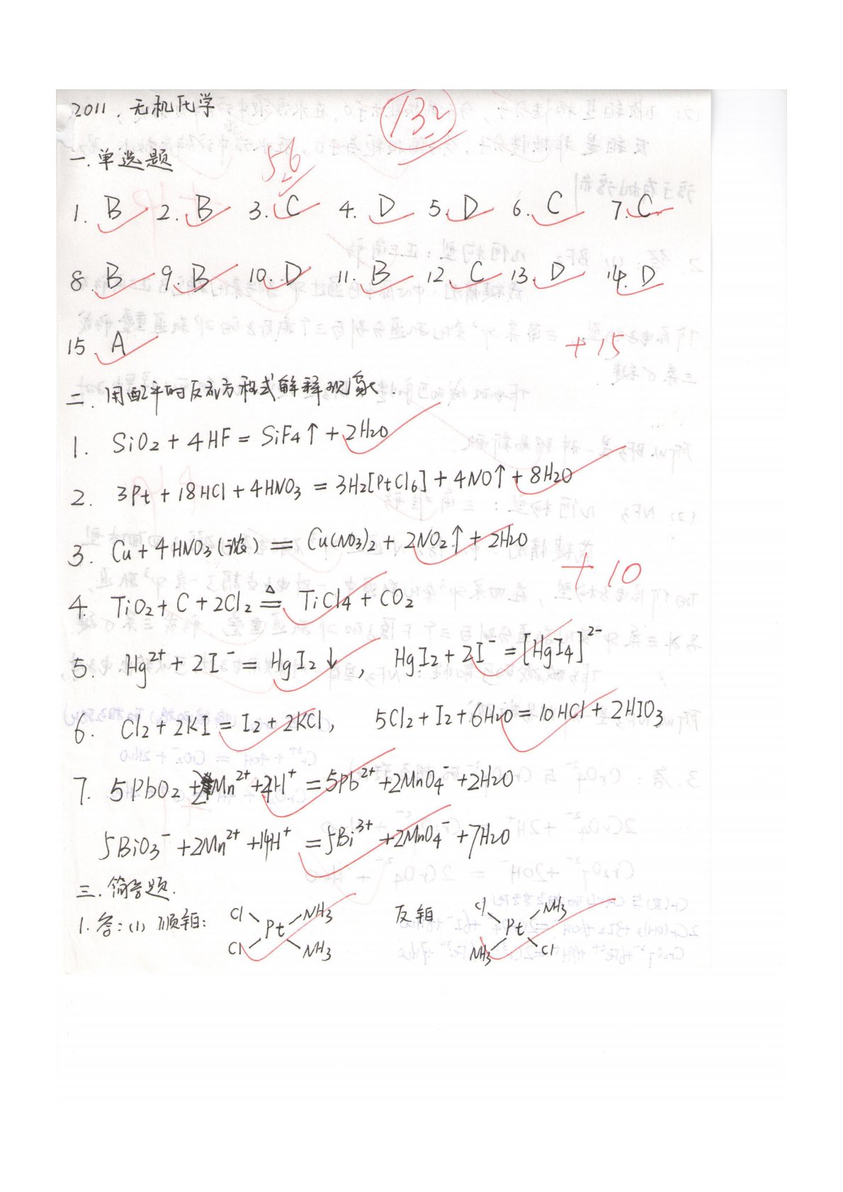 内蒙古大学671化学专业综合一无机化学2011年真题答案手写版1