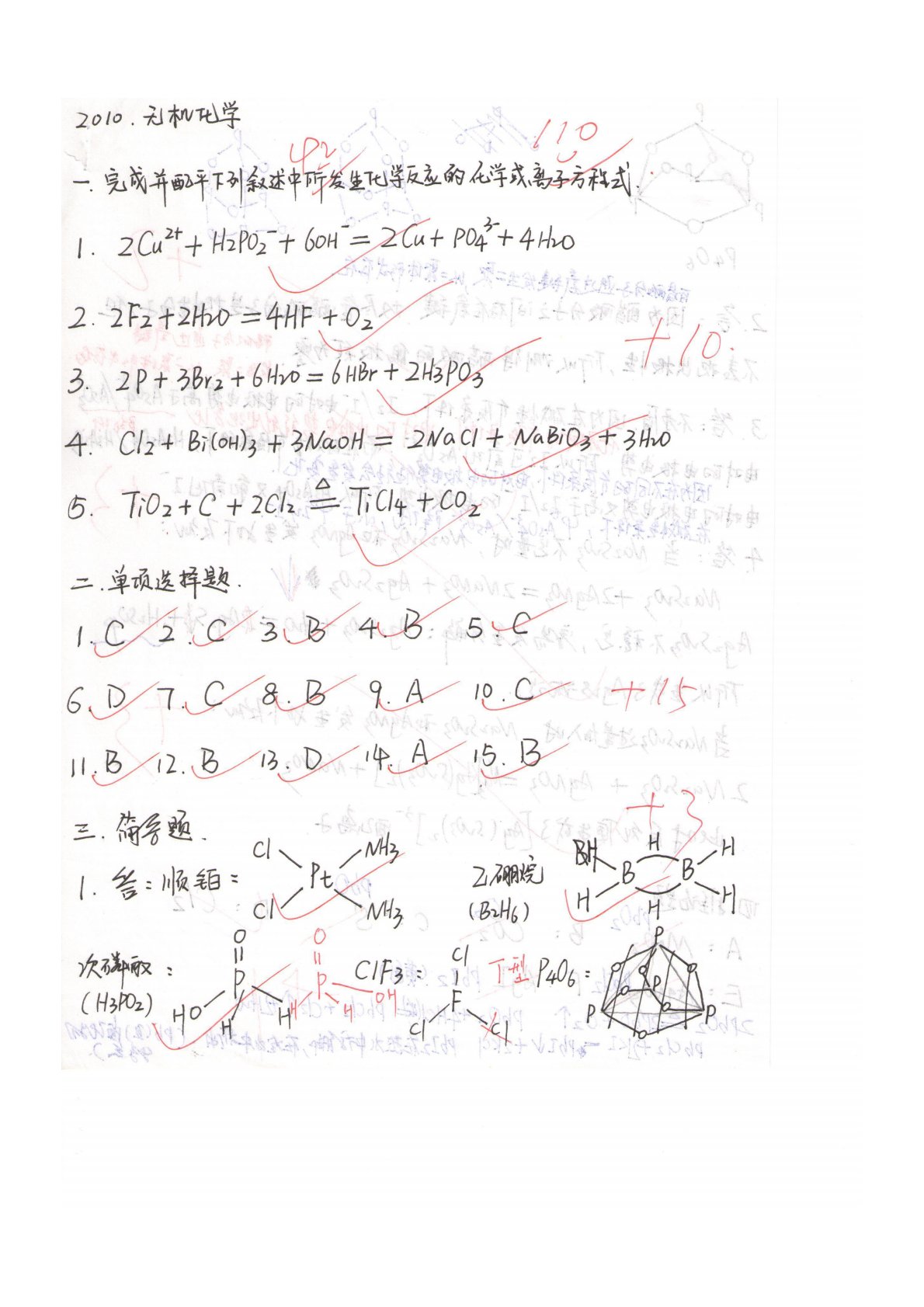 内蒙古大学671化学专业综合一无机化学2010年真题答案手写版1