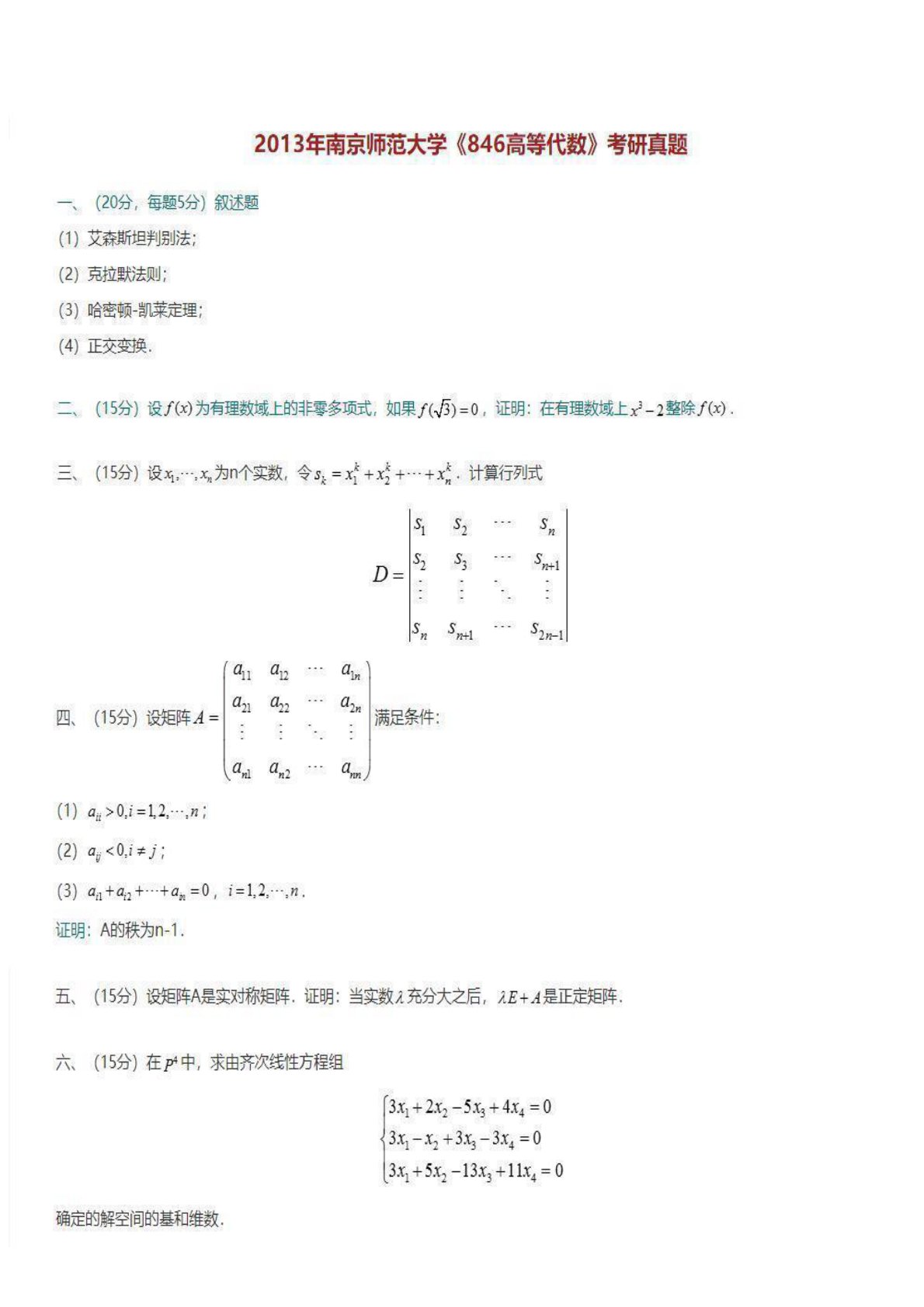 南京师范大学832高等代数2013年考试真题