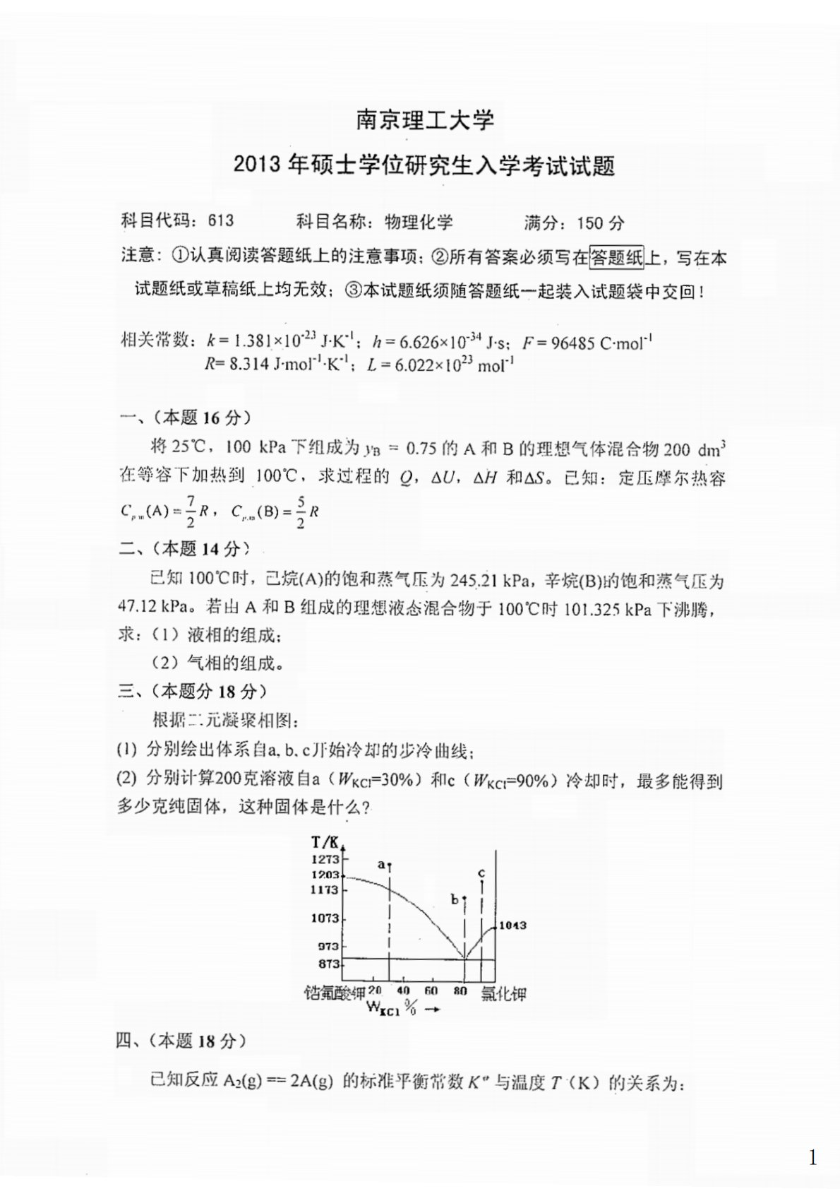 南京理工大学物理化学2013年真题