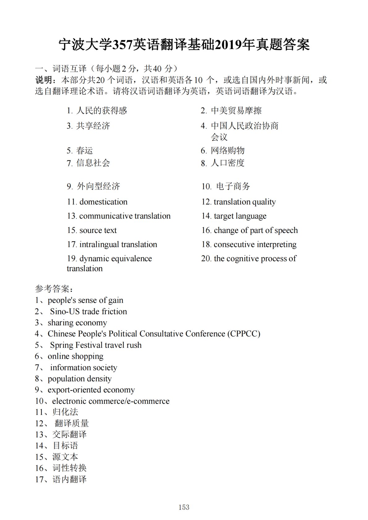宁波大学357英语翻译基础2019年真题答案