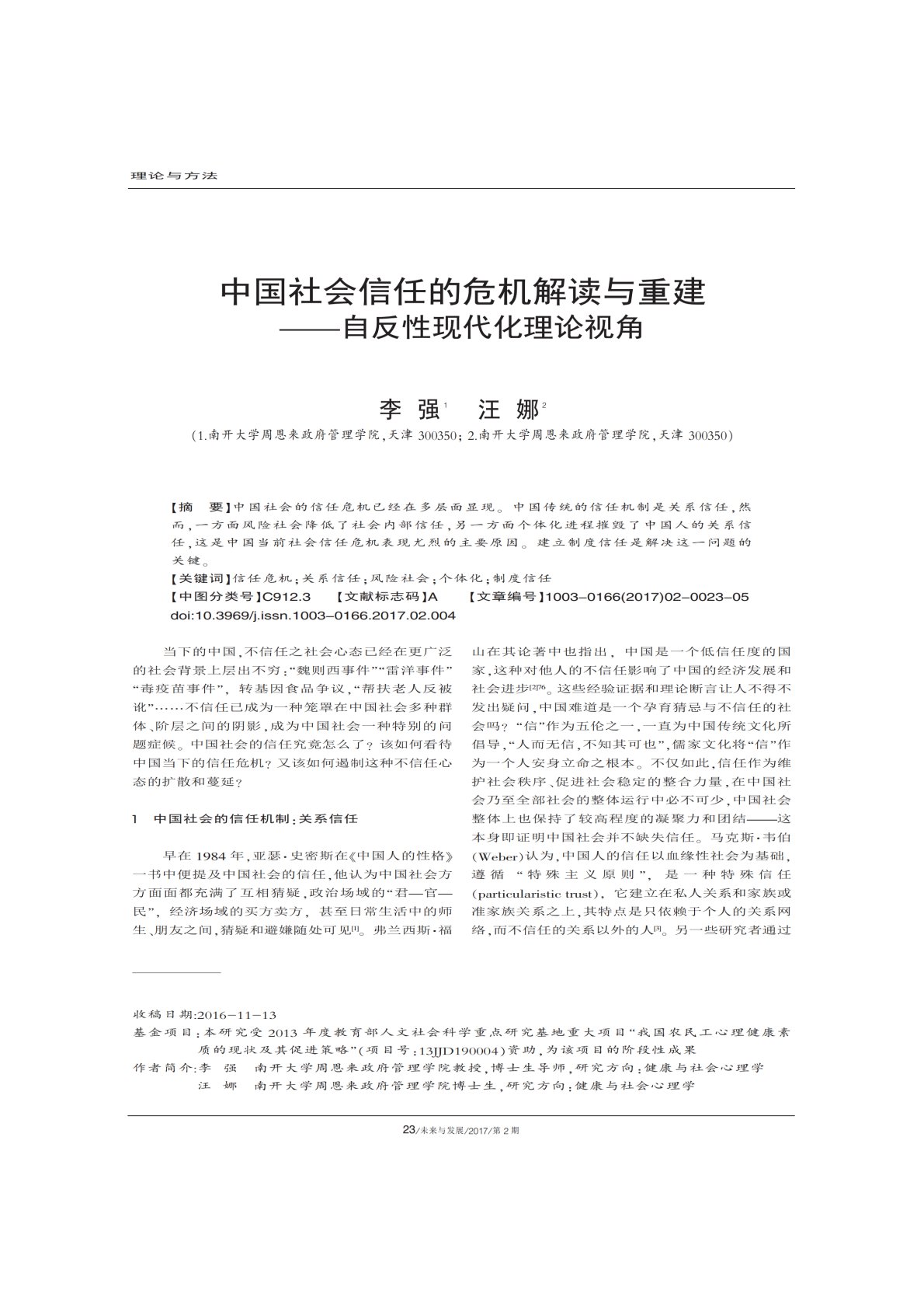 南开大学347心理学专业综合中国社会信任的危机解读与重建自反性现代化理论视角