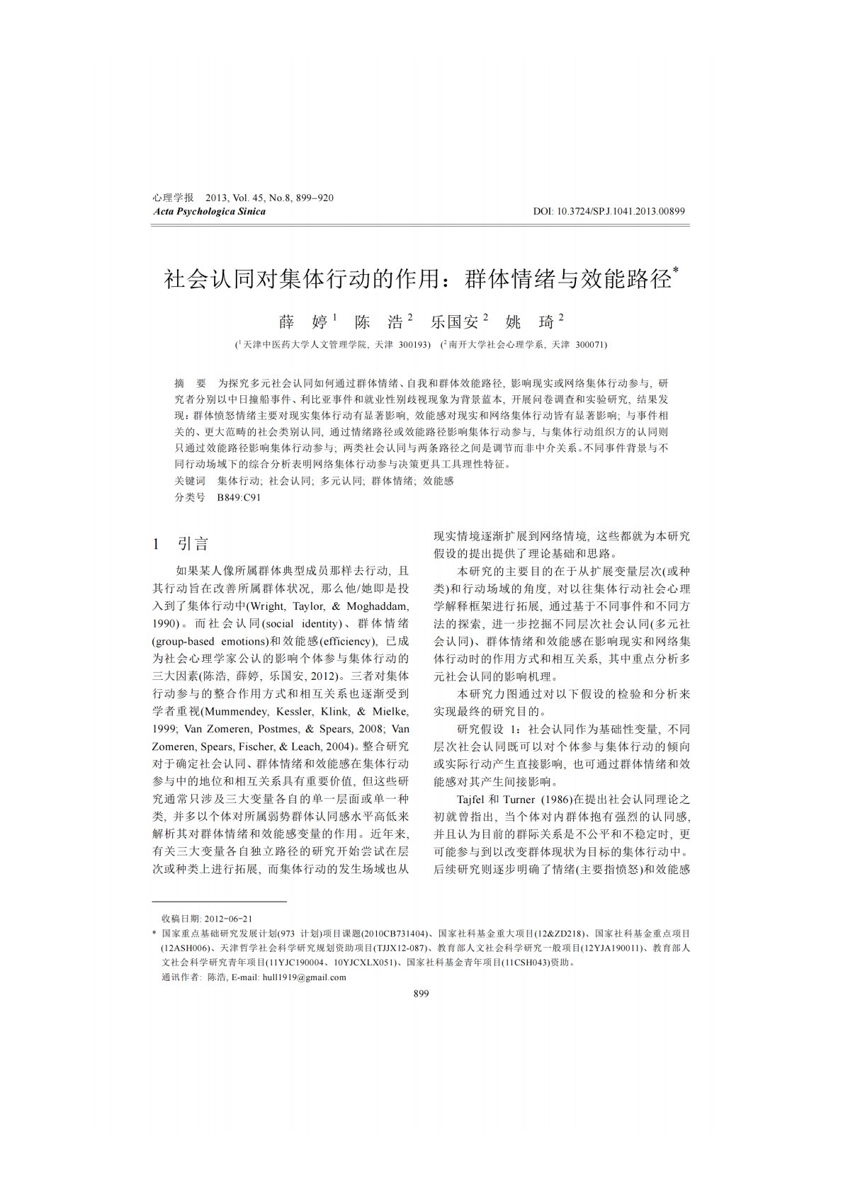 南开大学347心理学专业综合社会认同对集体行动的作用群体情绪与效能路径