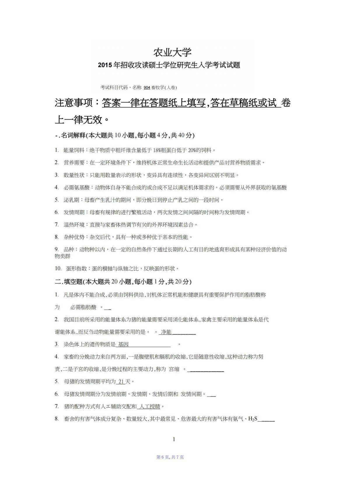 江西农业大学902畜牧学2015年真题